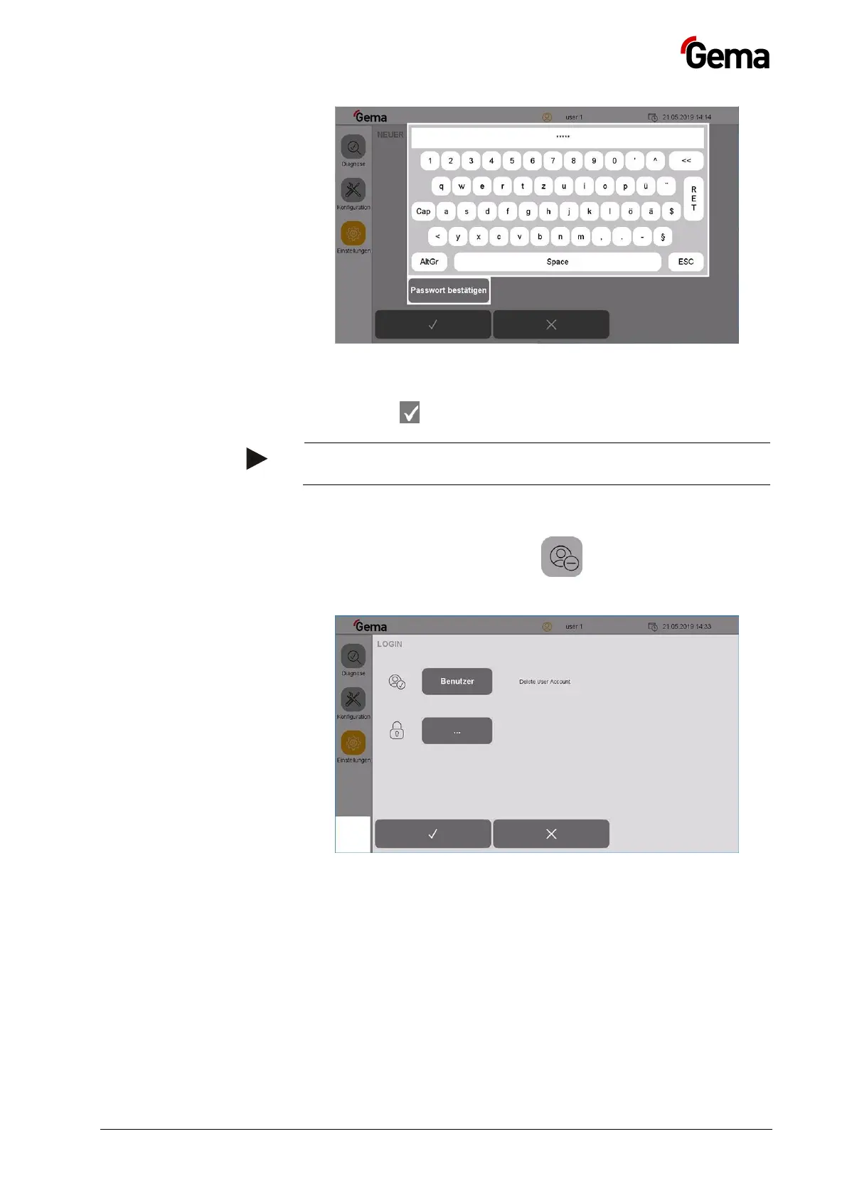 – A keyboard opens to enter the user name to be deleted.
