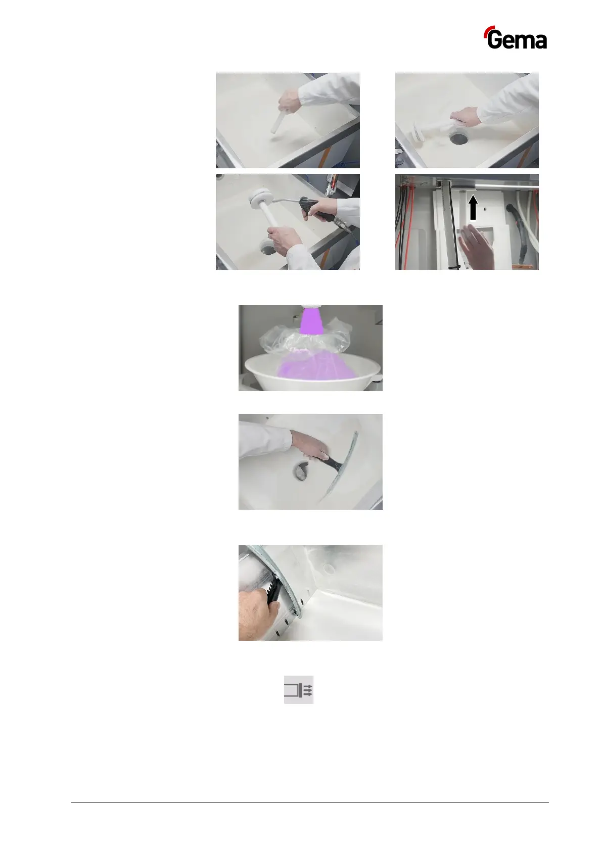– The powder hoses are cleaned and the residual is transported to