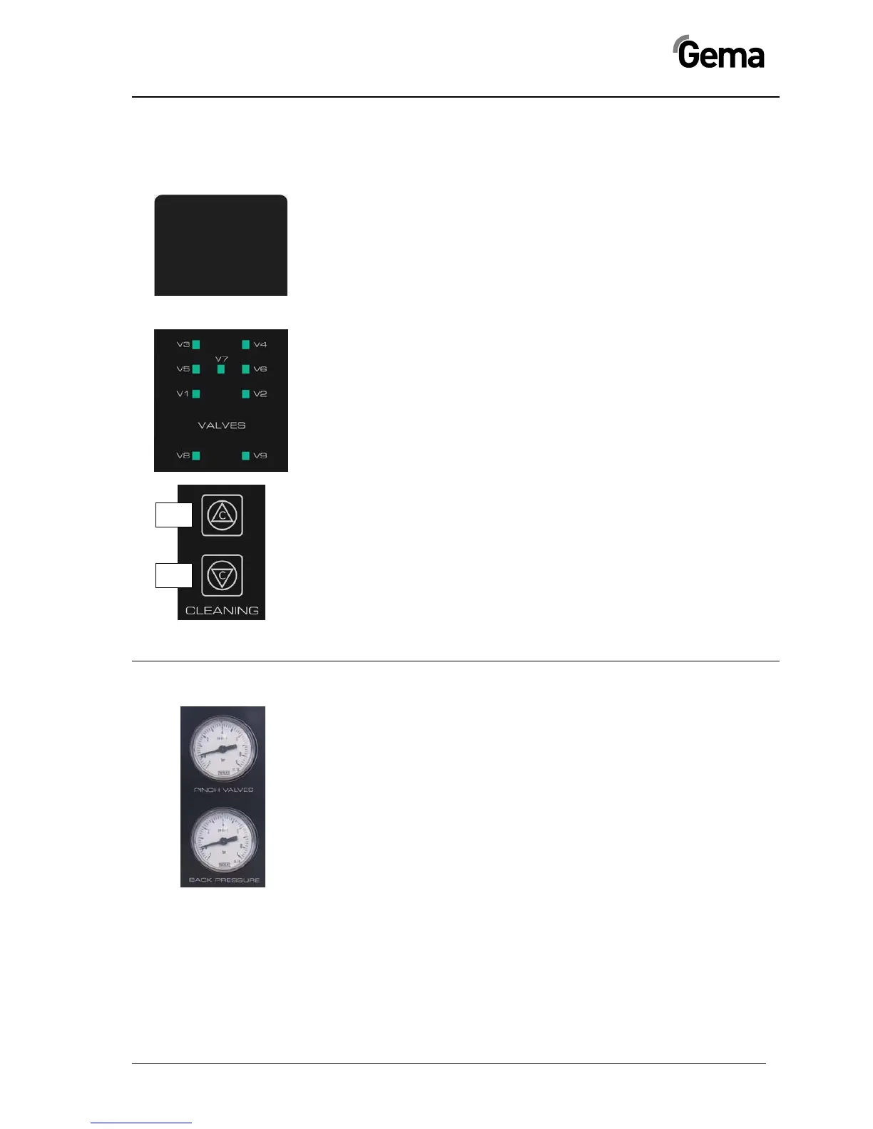 This pressure gauge indicates the adjusted pinch valve pressure. This