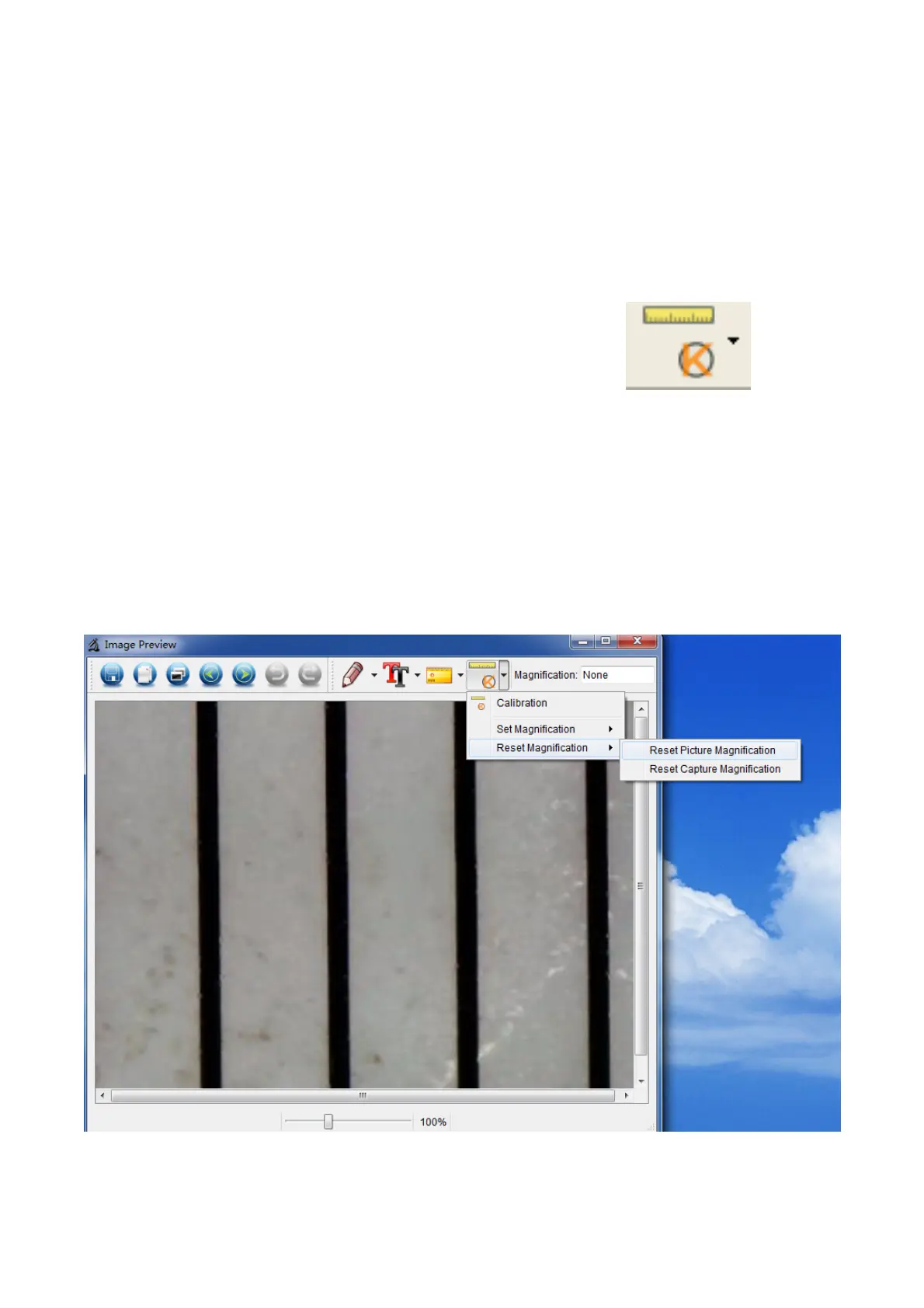 Reset magnification > Reset picture magnification’ as