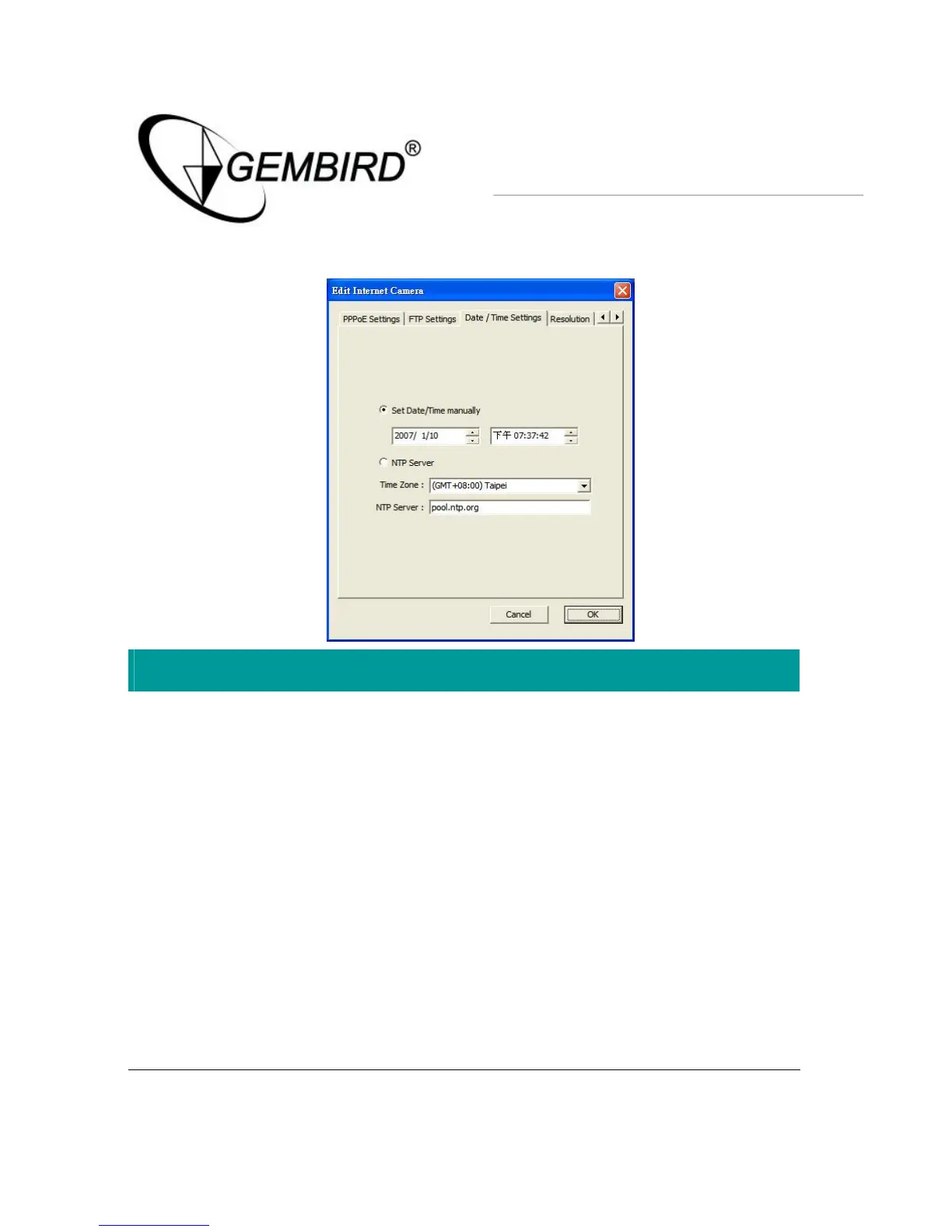 Gembird CAM78IP - Date;Time Settings
