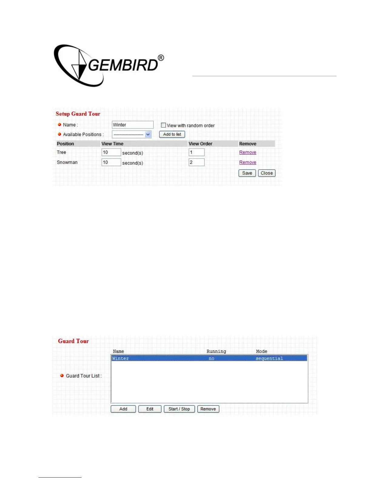 6. Press “Close” button to finish Setup Guard Tour”