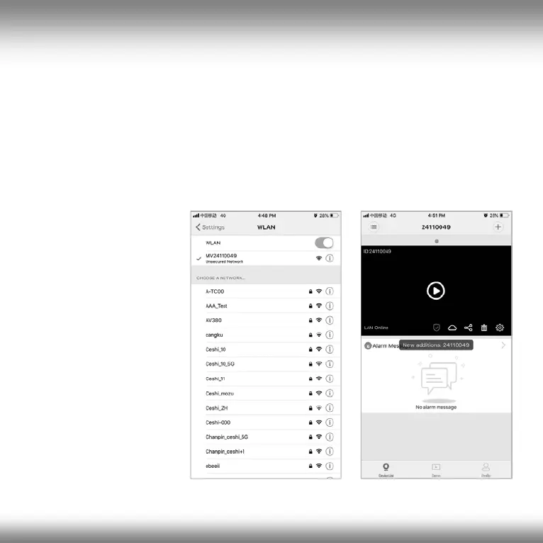 the phone and connect to the "MVxxxx" network of the camera. Wait for the