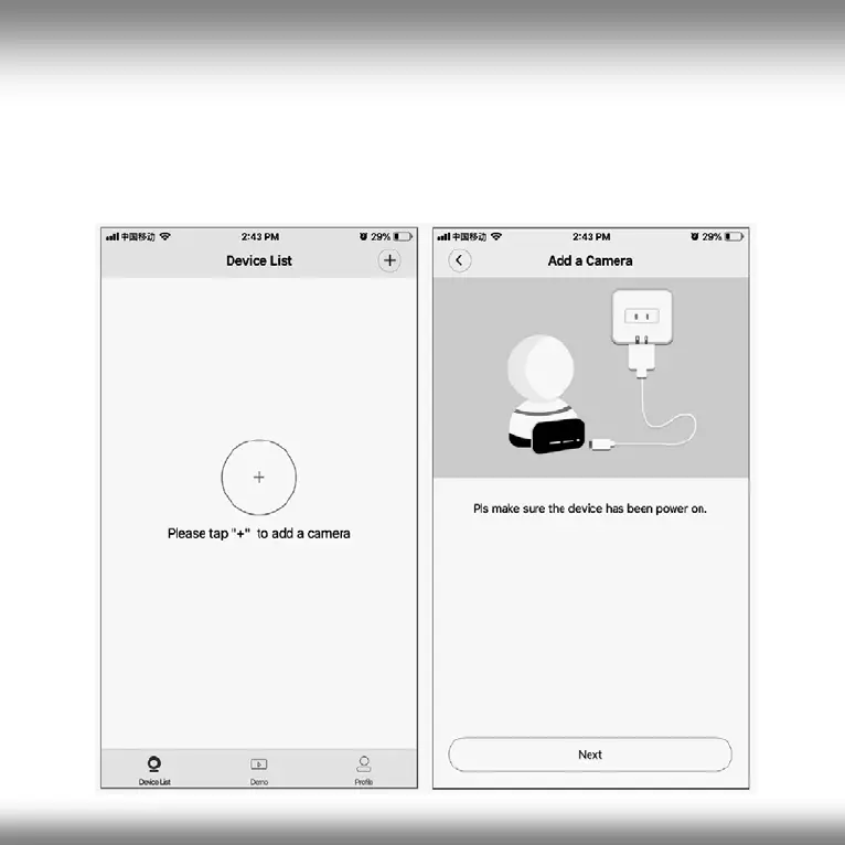 1. Tik op "+" midden in het scherm en en tik vervolgens op "next".