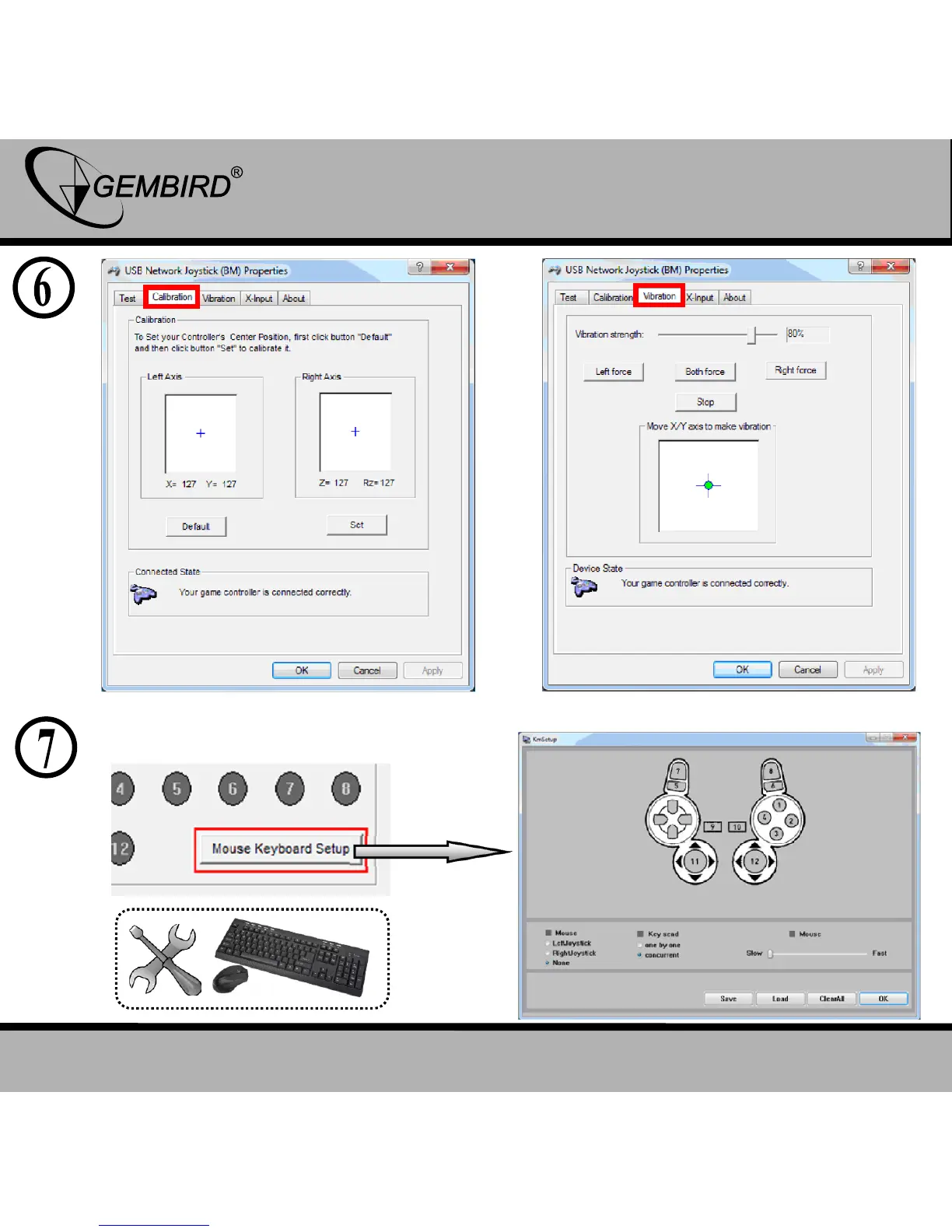 Gembird JPD-ST04W - Controller Configuration; Calibration and Vibration Settings; Mouse Keyboard Setup Overview