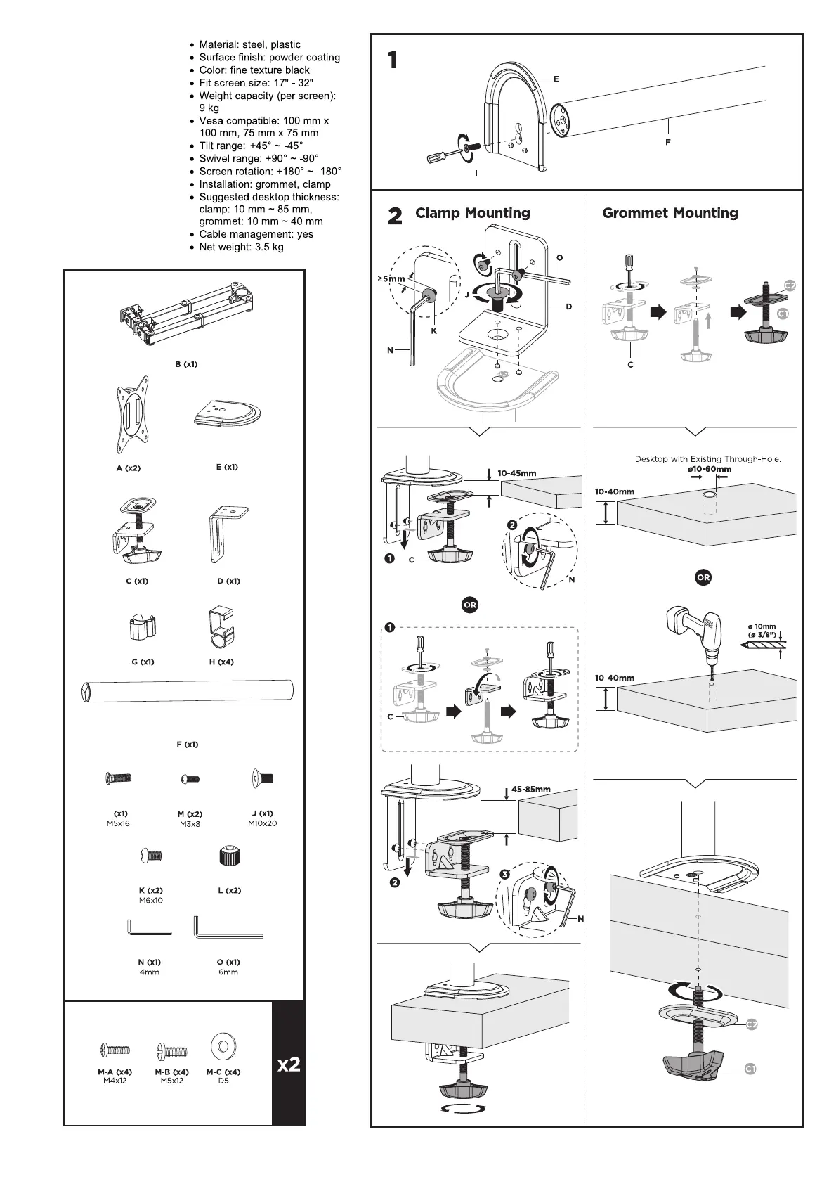 • Monitor desk mount with double