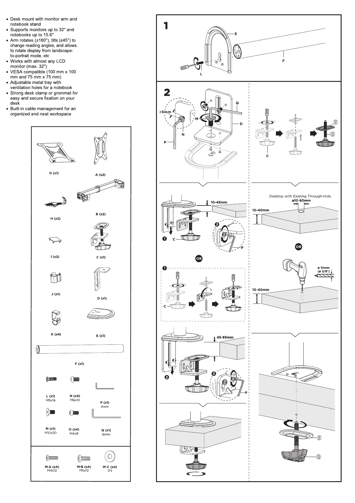 • Suggested desktop thickness: