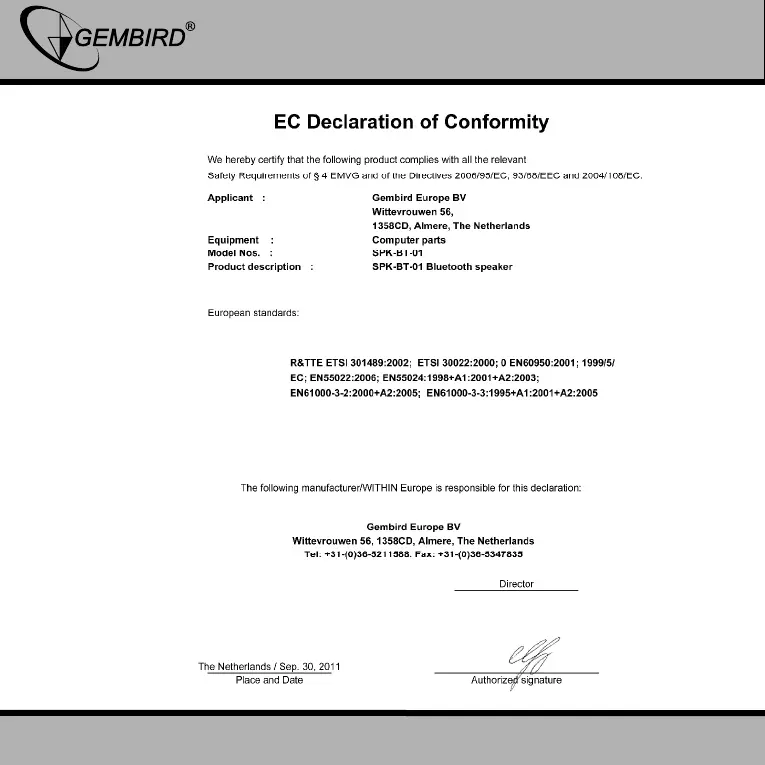 GEMBIRD EUROPE B.V. http://www.gembird.eu