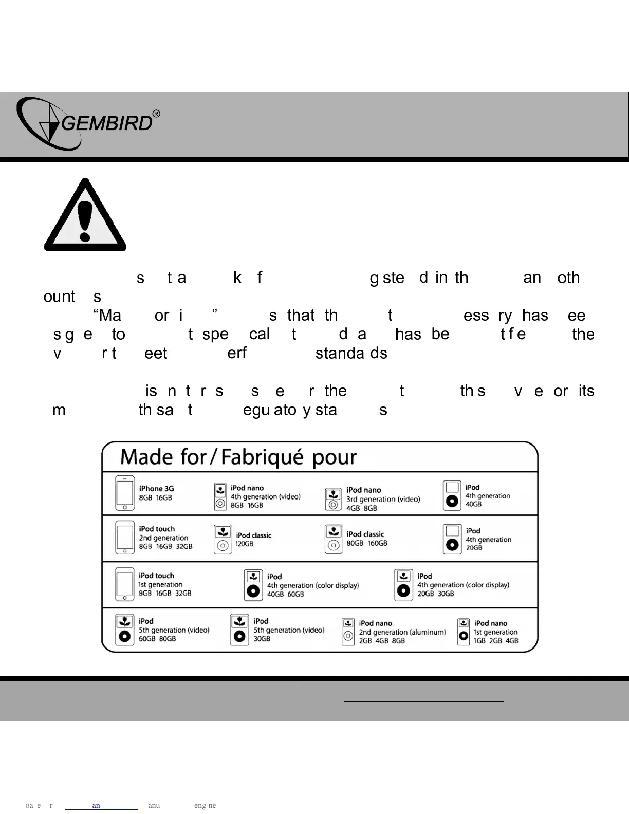 Gembird SPK321i - iPod Product Compatibility; Made for iPod Certification; List of Compatible iPod Models