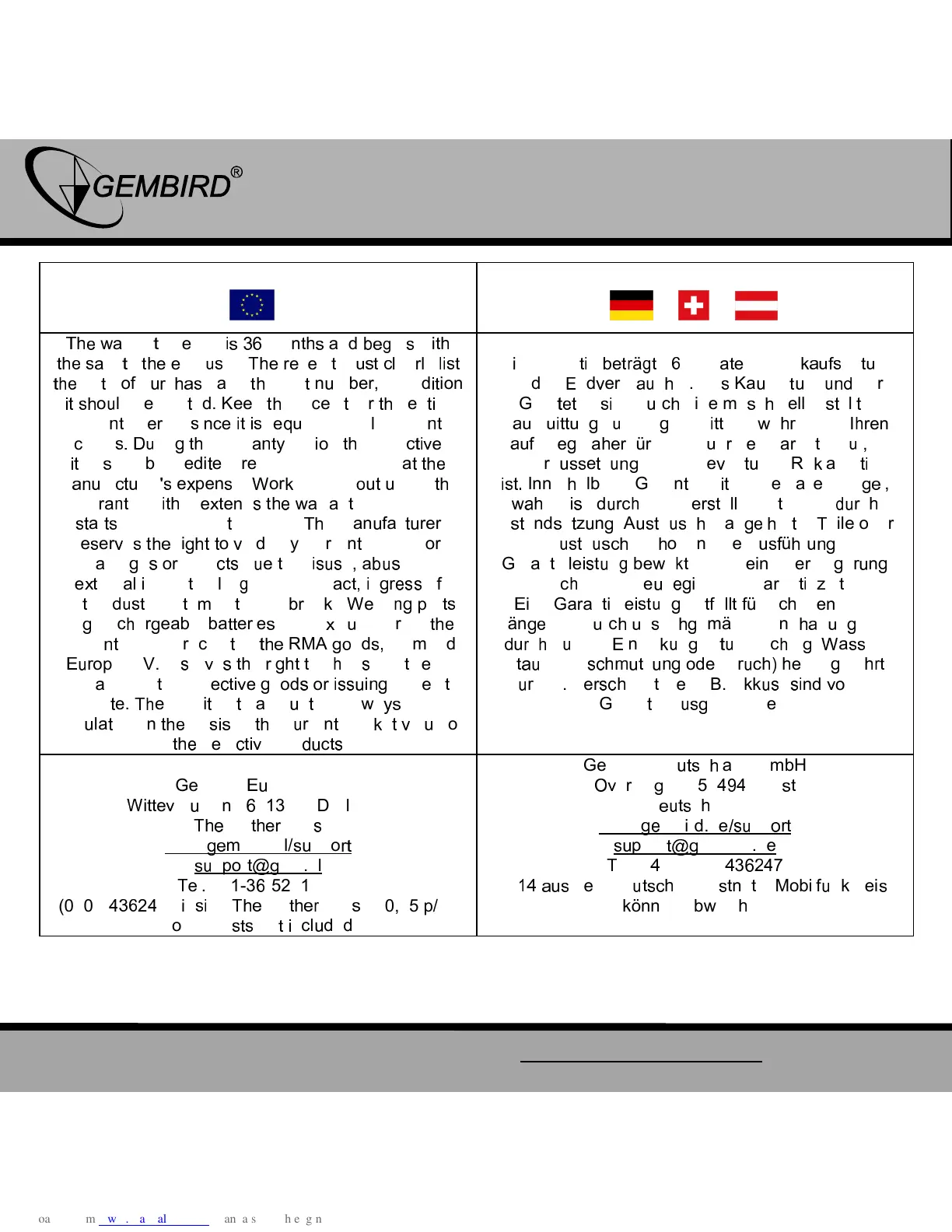 Gembird SPK321i - Warranty Conditions (English); Warranty Period and Proof of Purchase; Warranty Service and Exclusions; Gembird Europe B.V. Contact