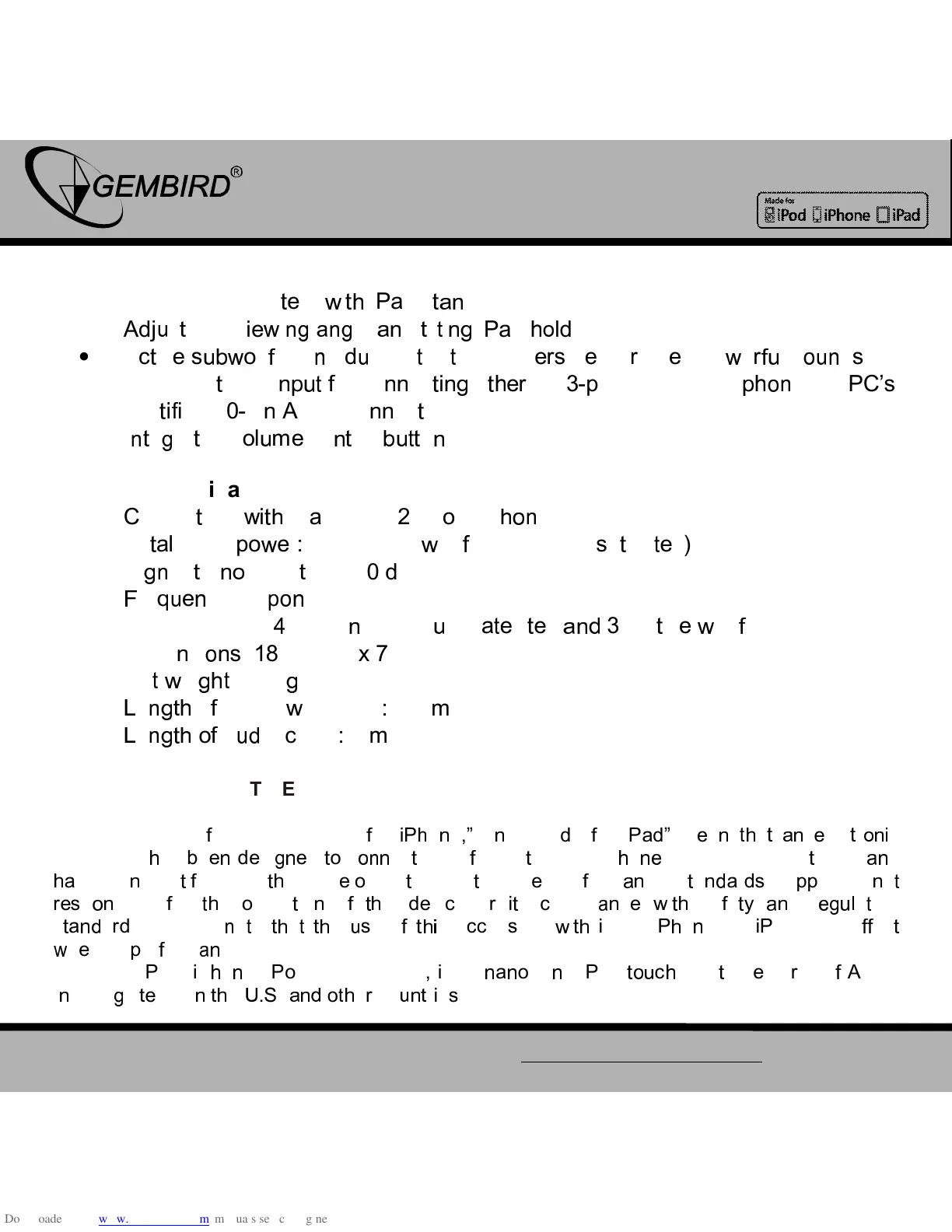 Gembird SPK331i - Product Details; Key Features; Technical Specifications