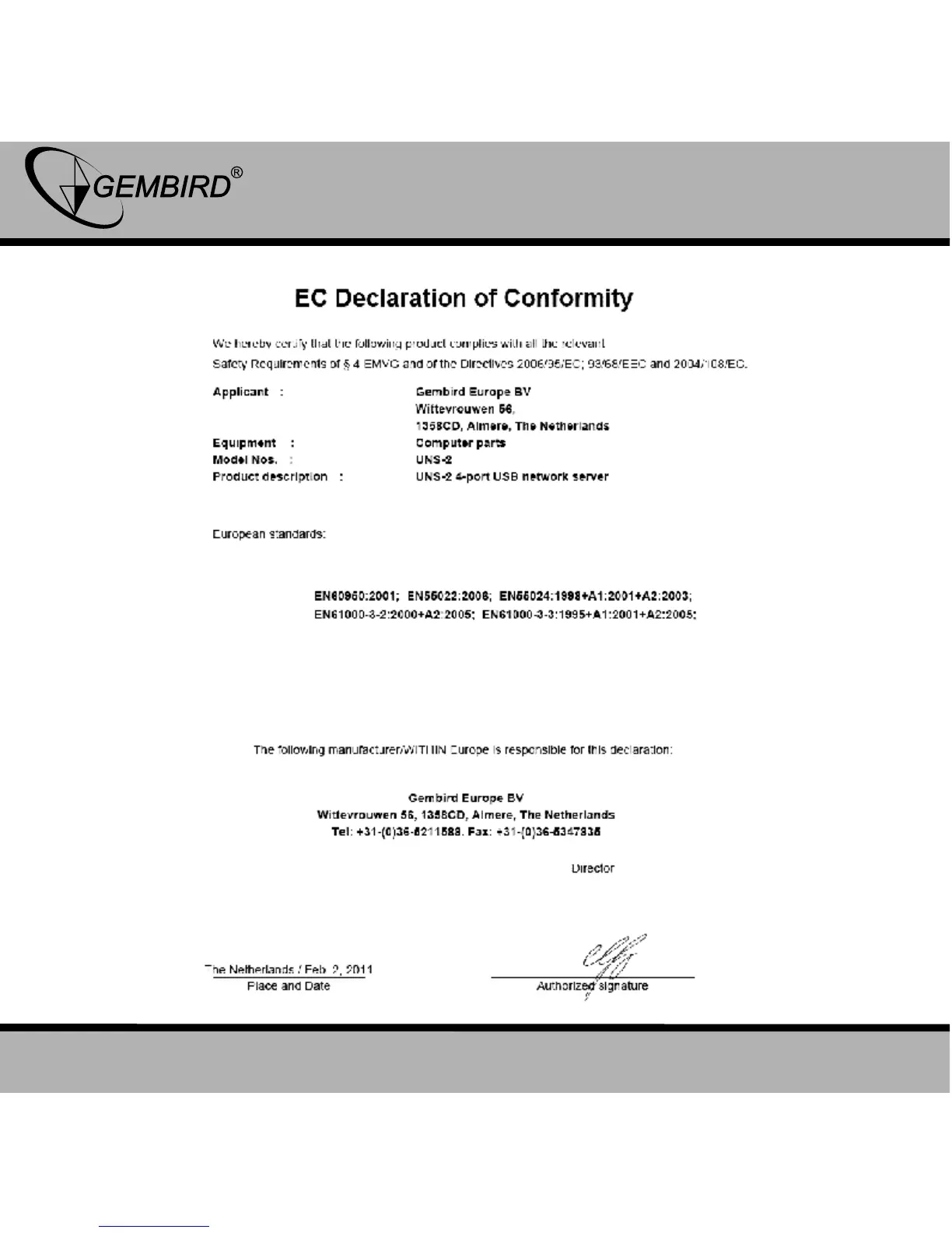 GEMBIRD EUROPE B.V. http://www.gembird.eu