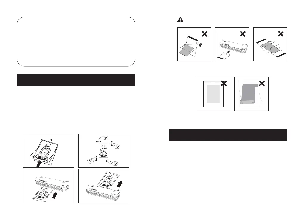 ♦ Verwenden Sie nur Laminierbeutel der richtigen Größe (bis zu A4) und Dicke (80 bis 125