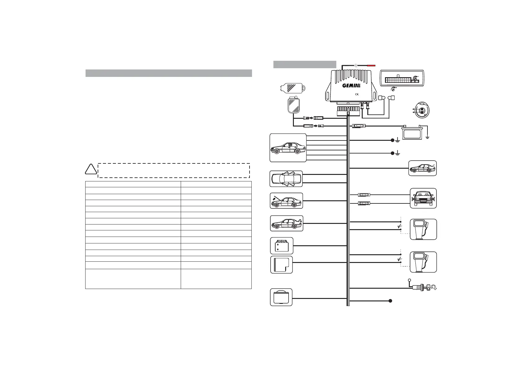 The table below refers to the alarm wiring diagram (see opposite page).