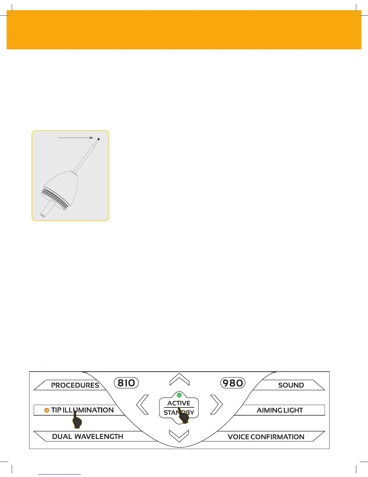 Pease note that the tip illumination light will only be permanently visible when laser is in Active