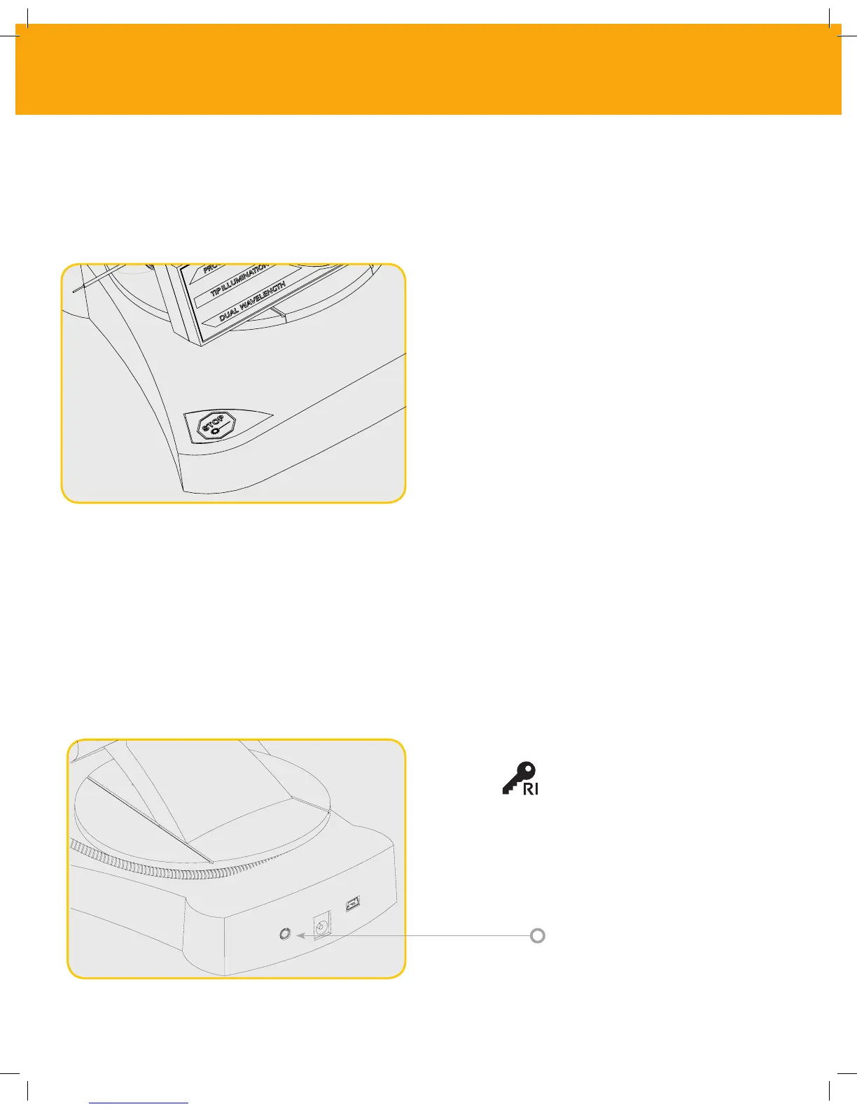 at any power setting by pressing the red STOP button located in the front left of the system.