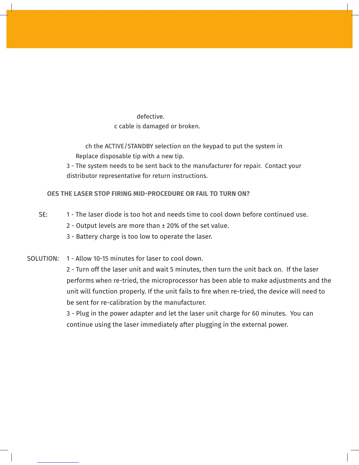 WHY DOES THE LASER STOP FIRING MID-PROCEDURE OR FAIL TO TURN ON?