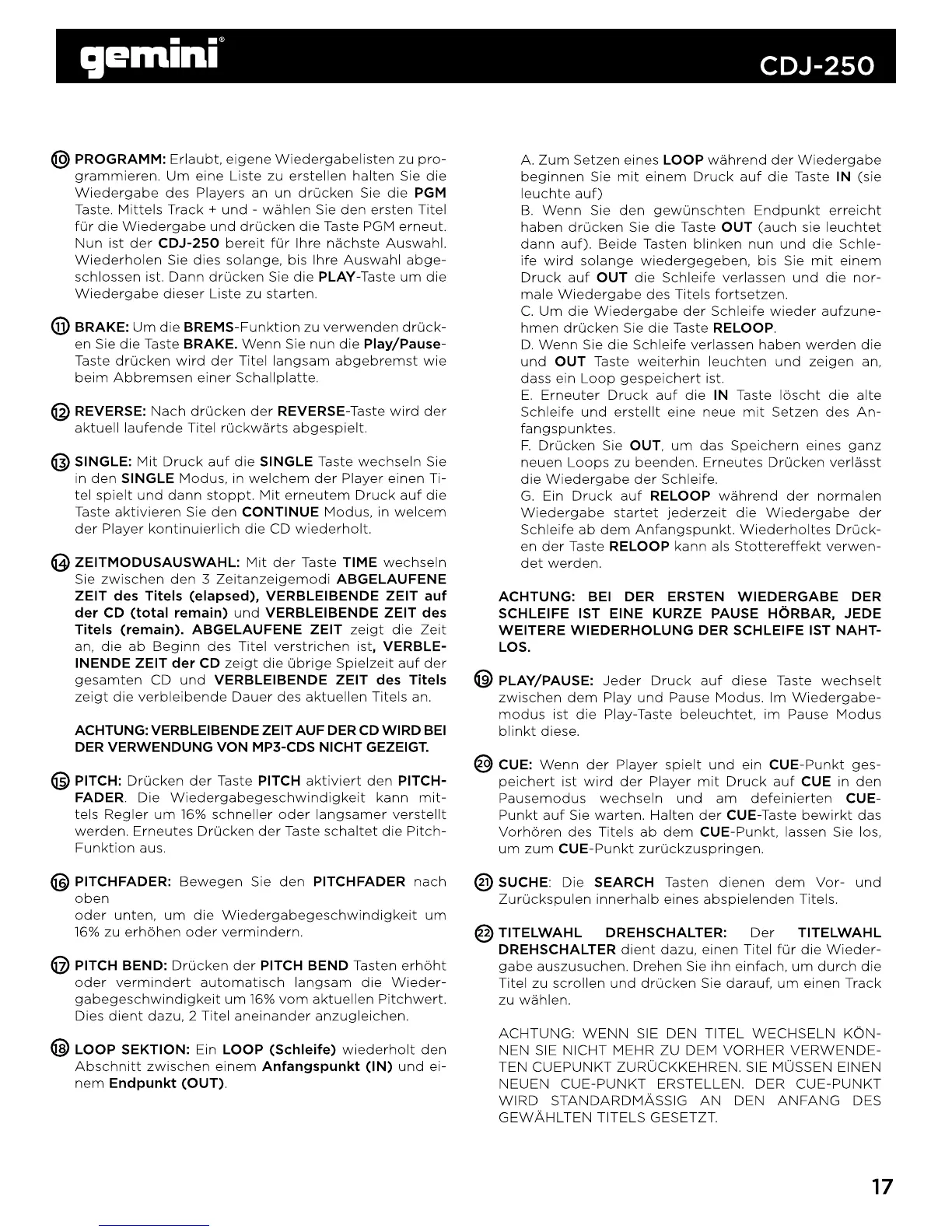 Gemini CDJ-250 - Page 17