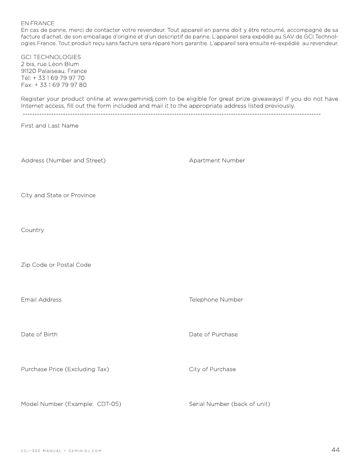 Gemini CDJ-300 - Page 44