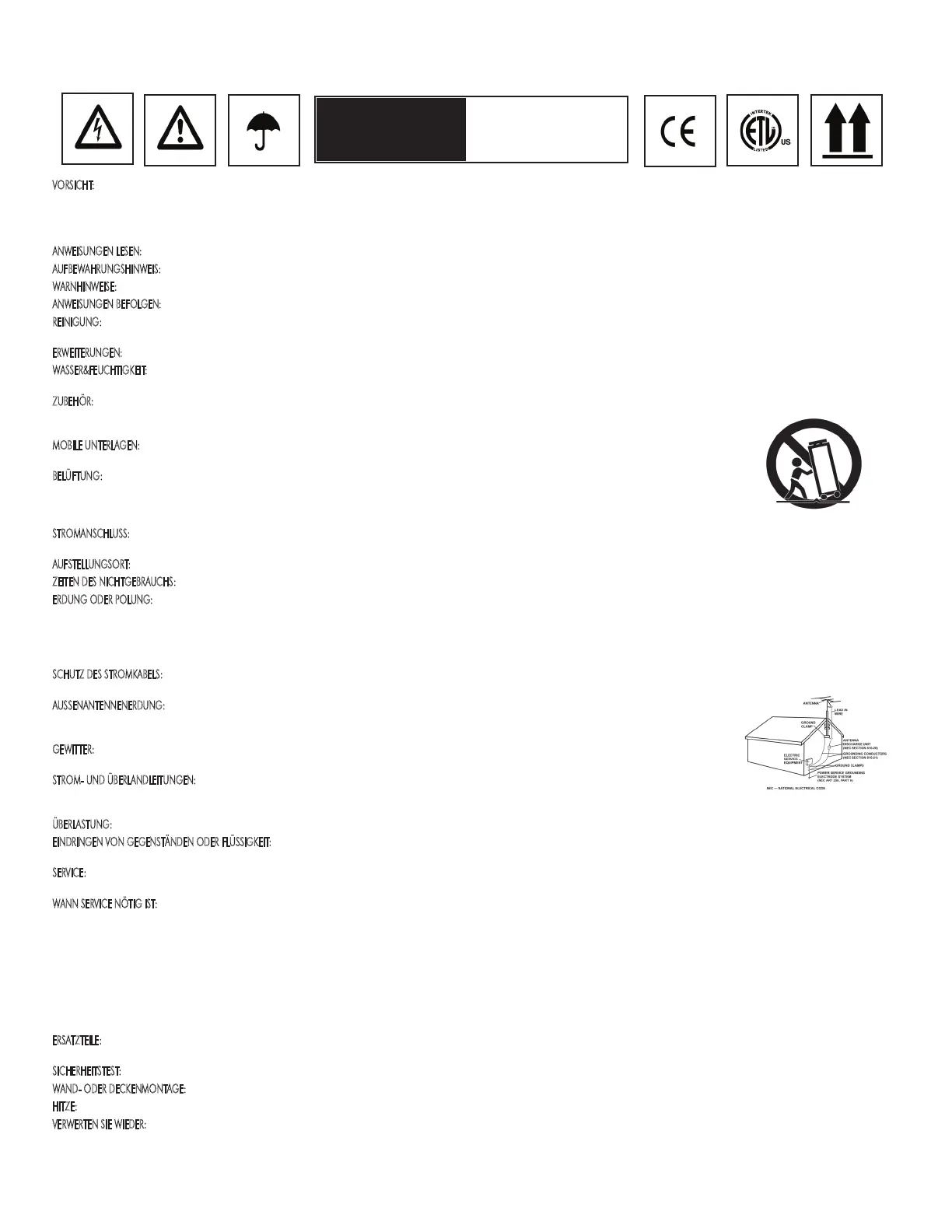 beschädigt werden. Stellen Sie das Produkt nur auf vom Hersteller empfohlene oder verkaufte Unterlagen. Jede Befestigung und Montage des Produkts sollte nach den Anweisungen des