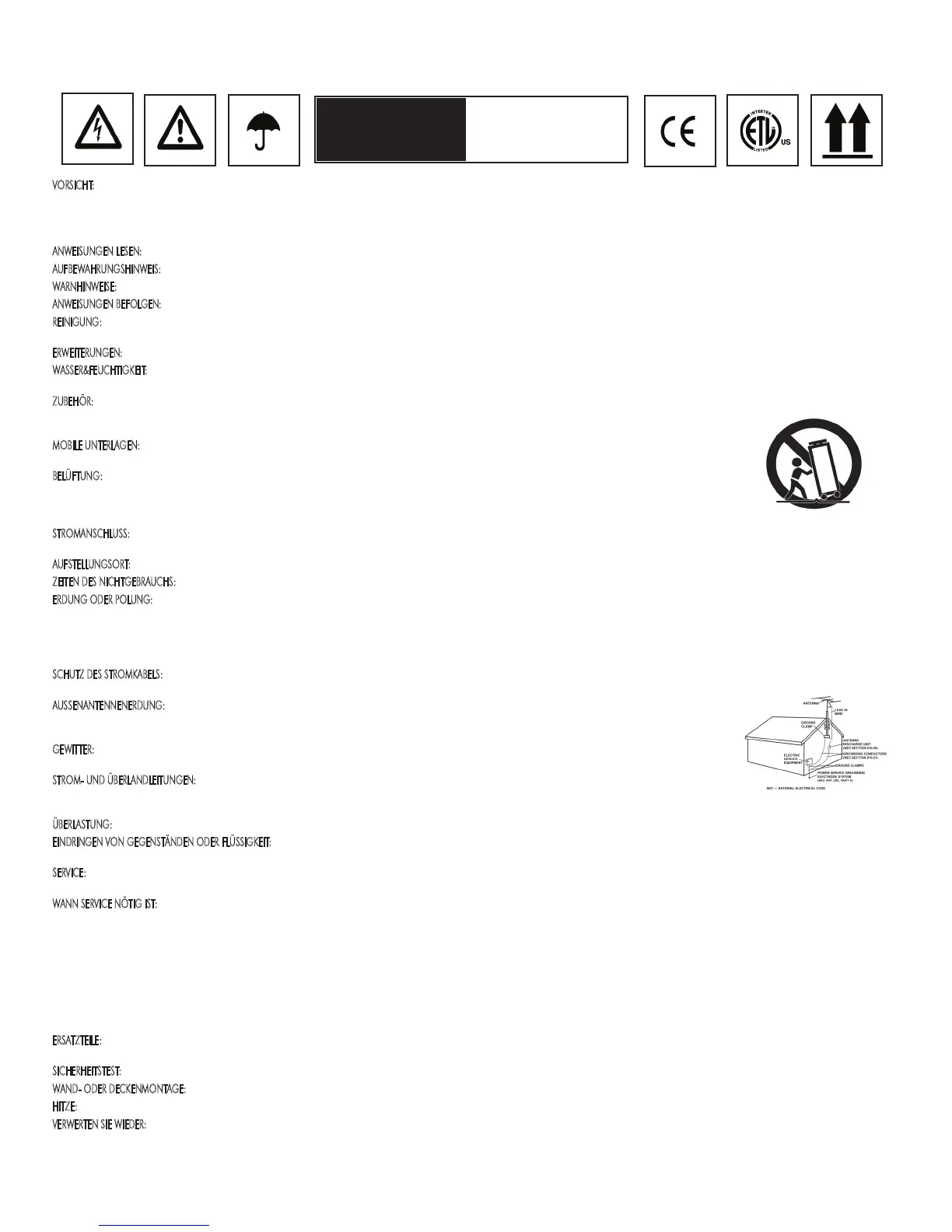 Das Blitzsymbol im gleichseitigen Dreieck dient dazu, den Benutzer vor gefähr lichen Spannungen an nicht isolierten Stellen im Gehäuse zu warnen, die so groß sind, dass sie eine Gefahr für den Benutzer darstellen.