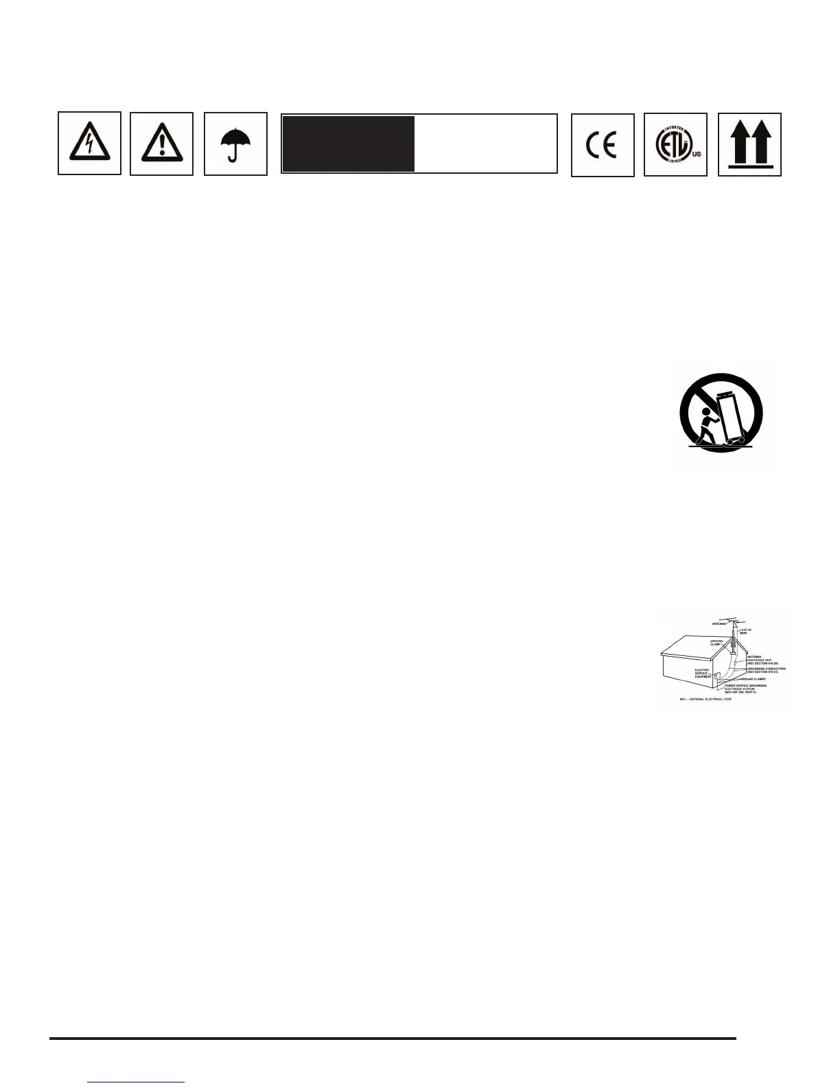 MONTAJE EN UNA PARED O TECHO: Este producto nunca debe montarse en una pared o en el techo.