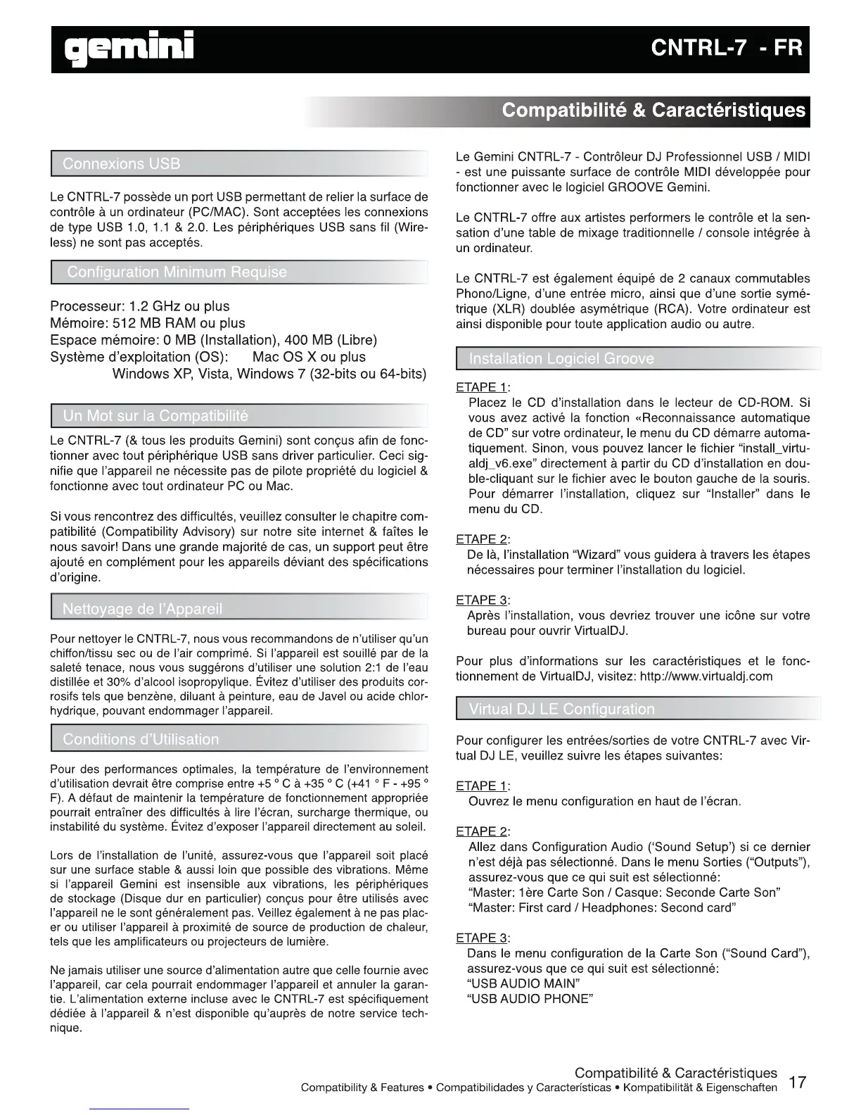 Gemini CNTRL-7 - Compatibilité & Caractéristiques