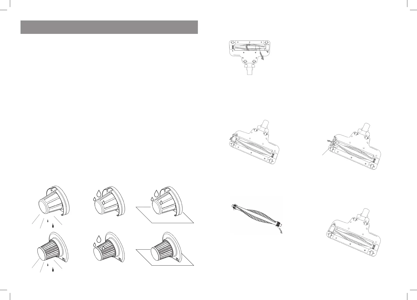 • In case of stubborn dirt or loss in suction power, wash as instructed below: