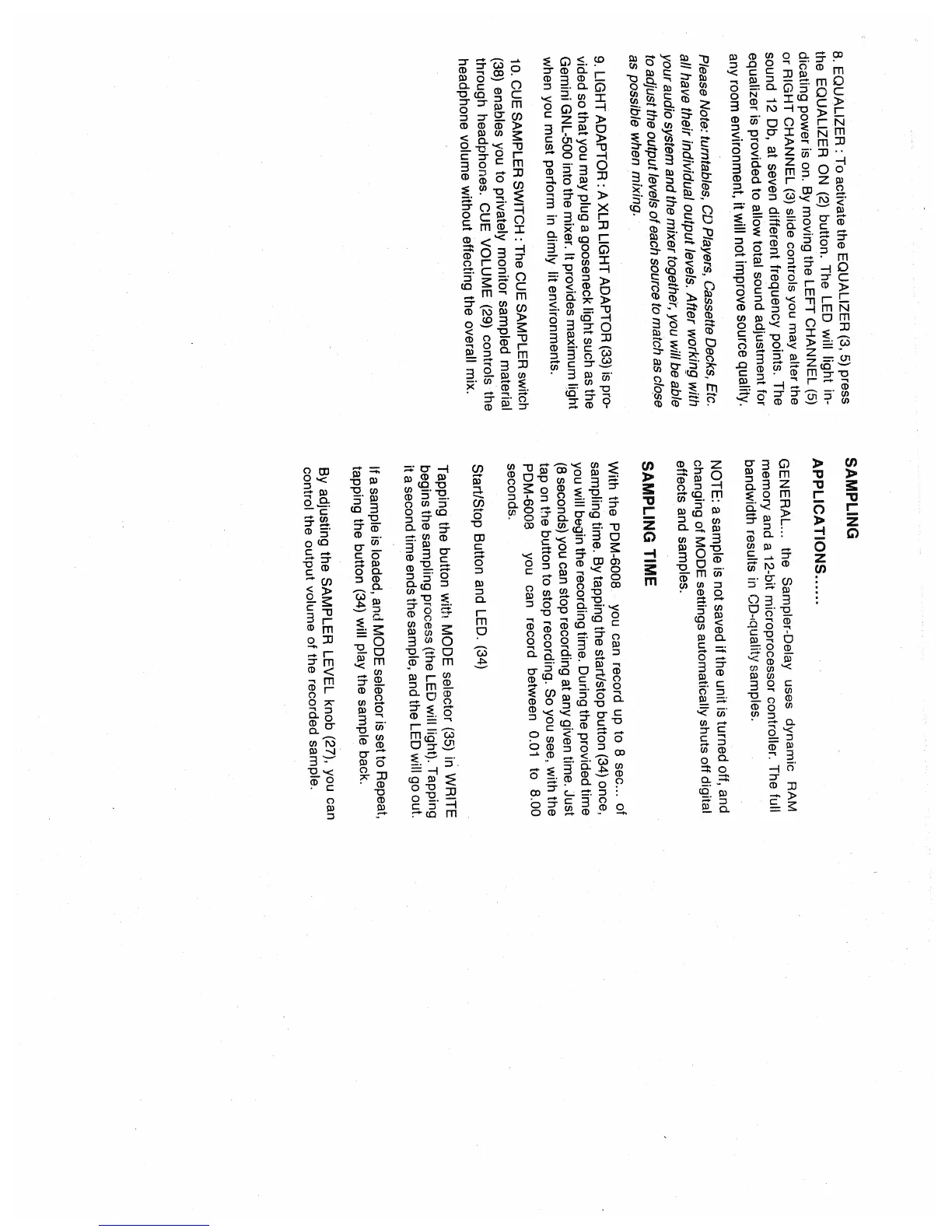 Gemini PDM-6008 - Sampler Applications and EQ; Sampler Applications and Recording Timing; Equalizer and Accessory Features