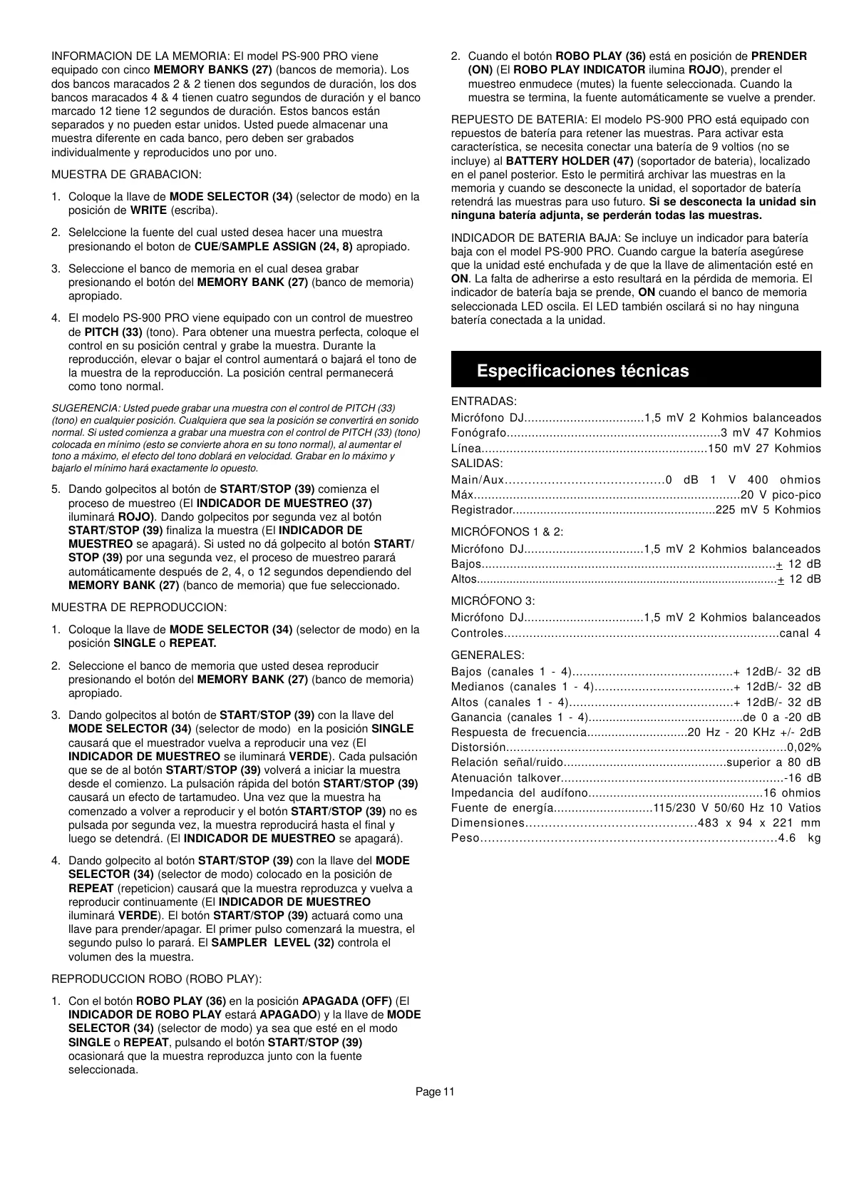 REPUESTO DE BATERIA: El modelo PS-900 PRO está equipado con
