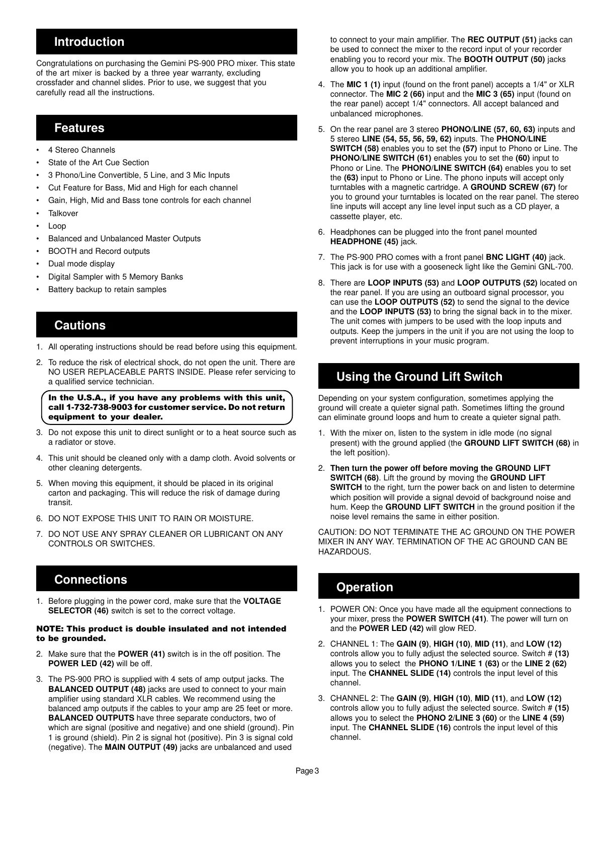 Congratulations on purchasing the Gemini PS-900 PRO mixer. This state