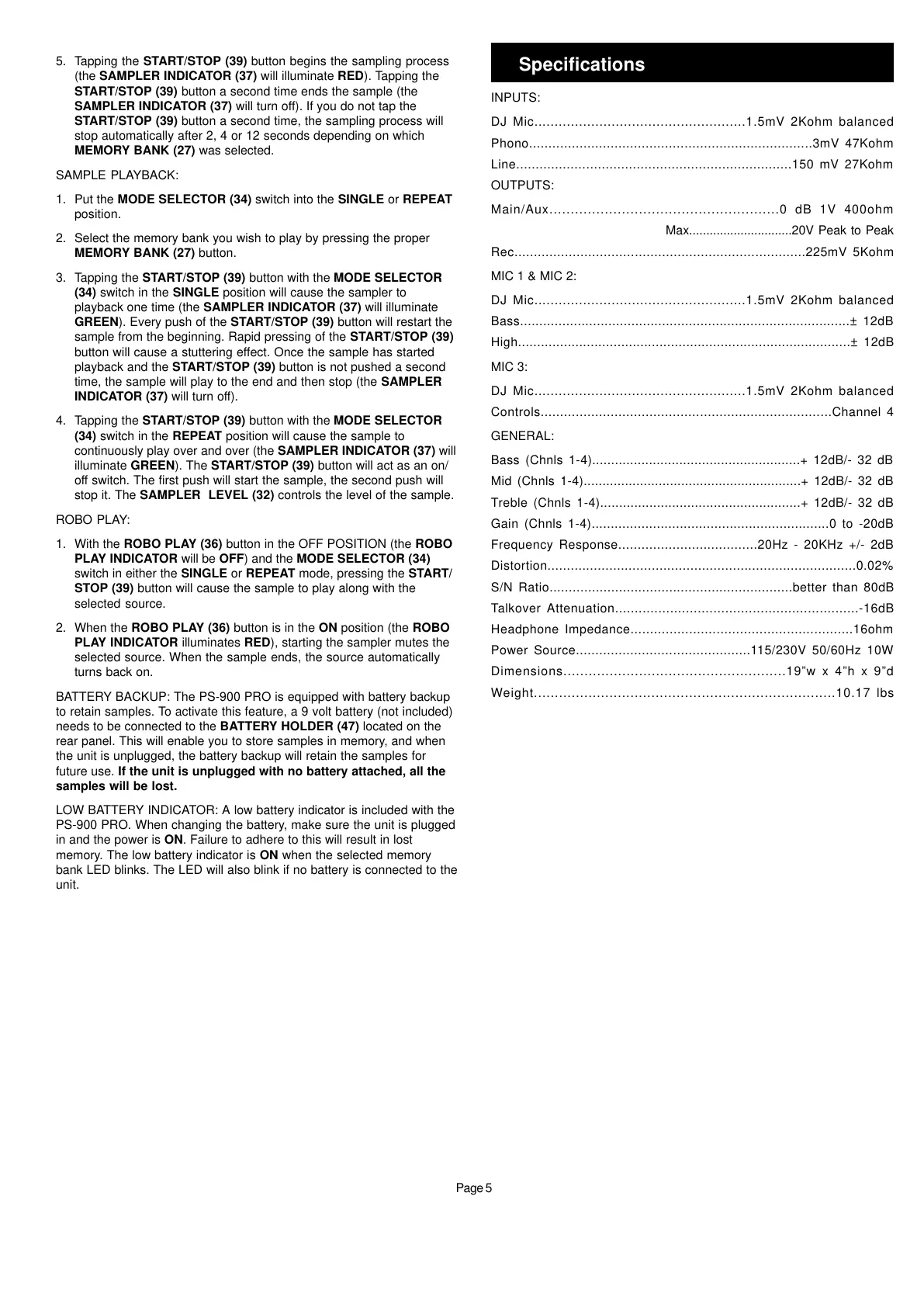 Gemini PS-900 - Specifications