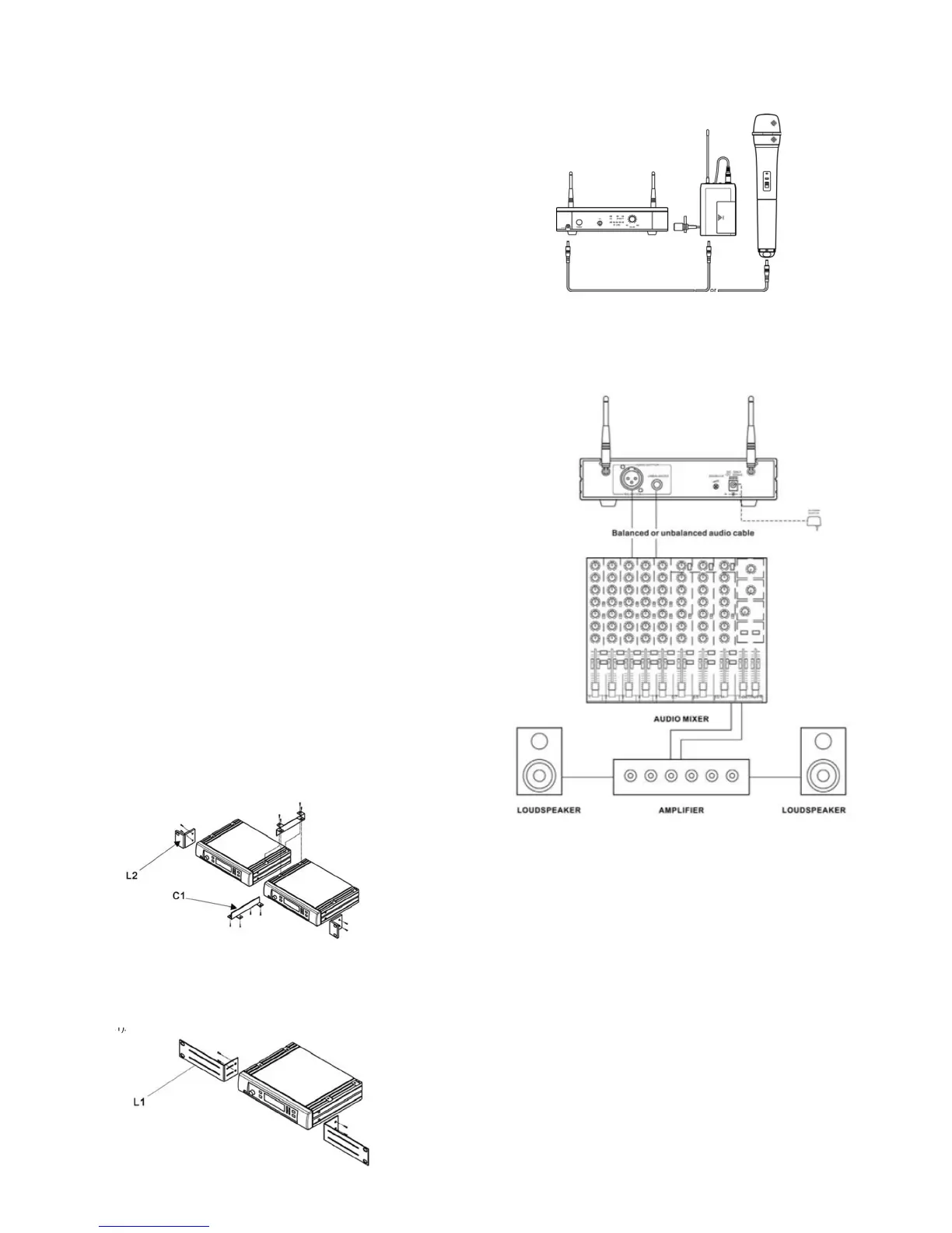 19" standard rack by using 2 short L type plastic racks (L2) and 2 metal connecting