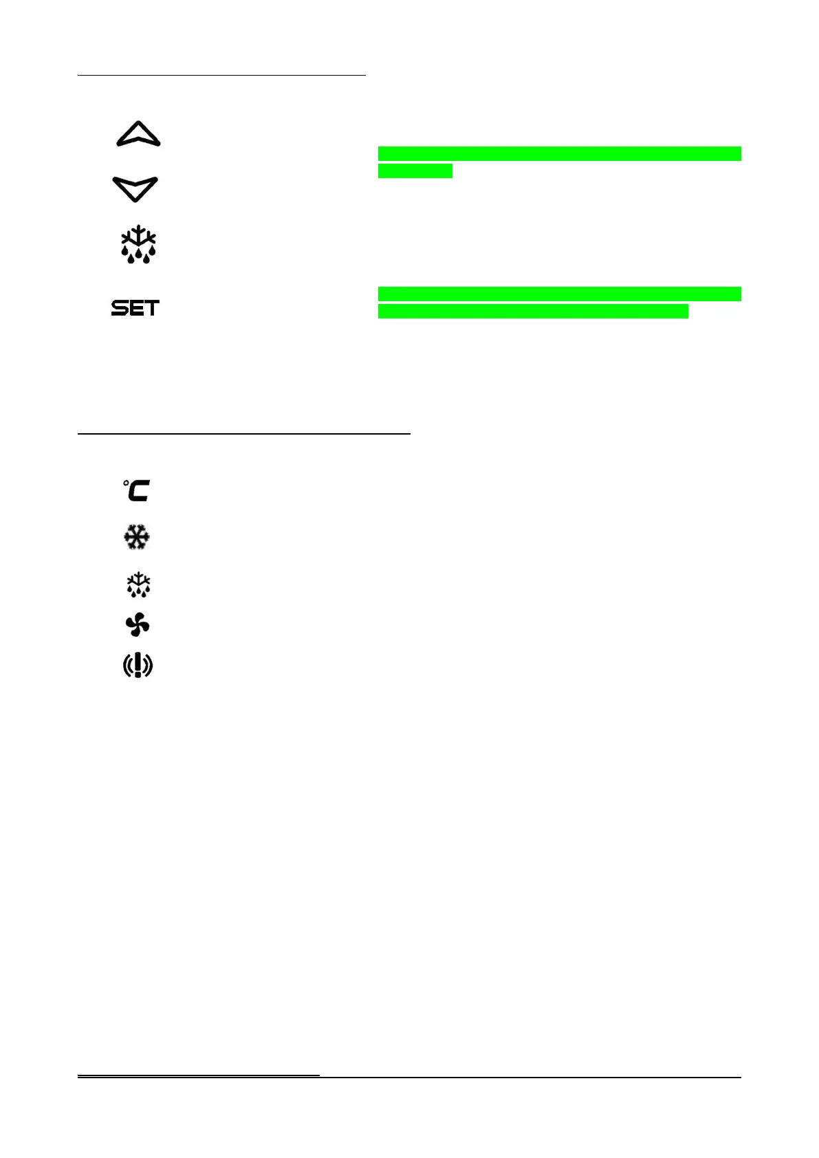 durchgehende Drücken für 3 Sekunden die Abtauung