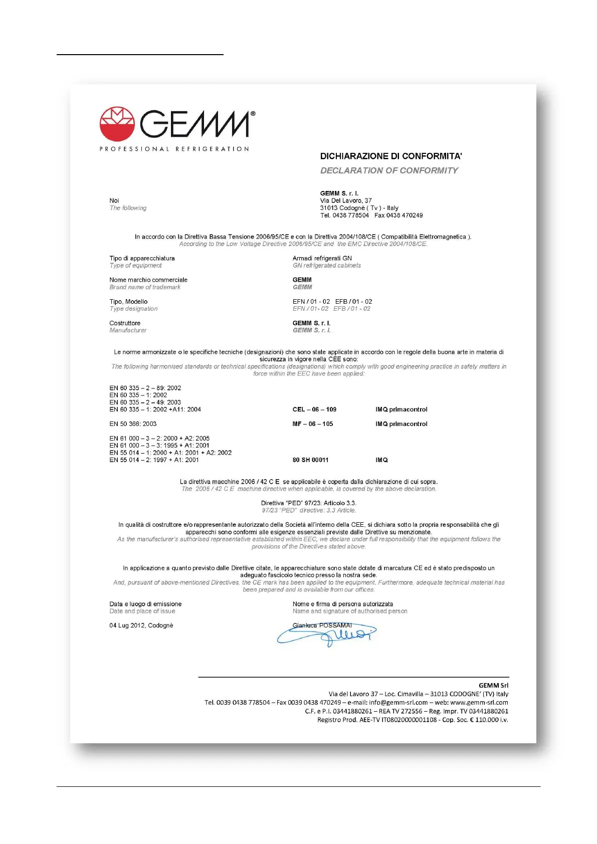1.2 DECLARATION OF CONFORMITY
