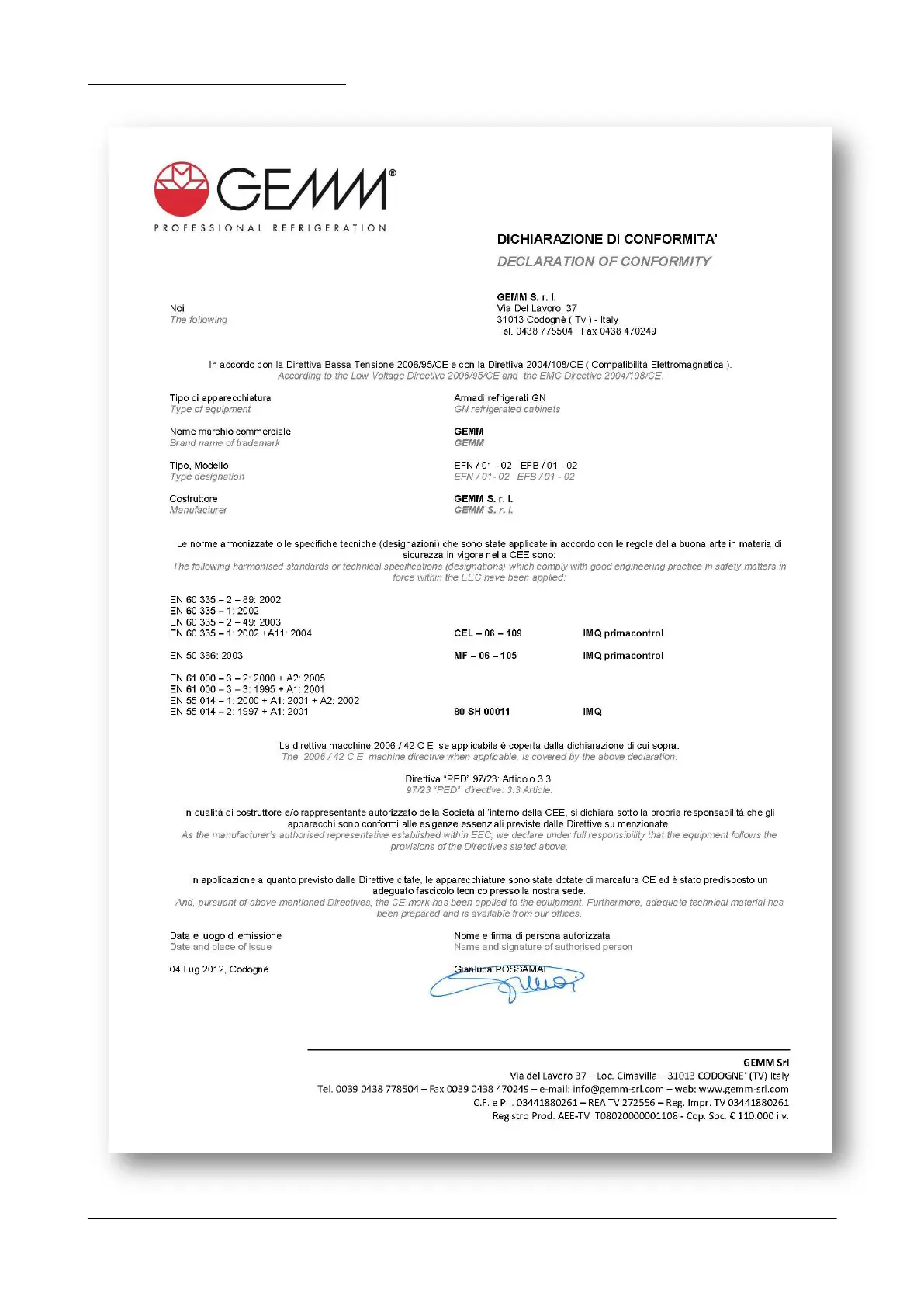 1.2 DÉCLARATION DE CONFORMITÉ