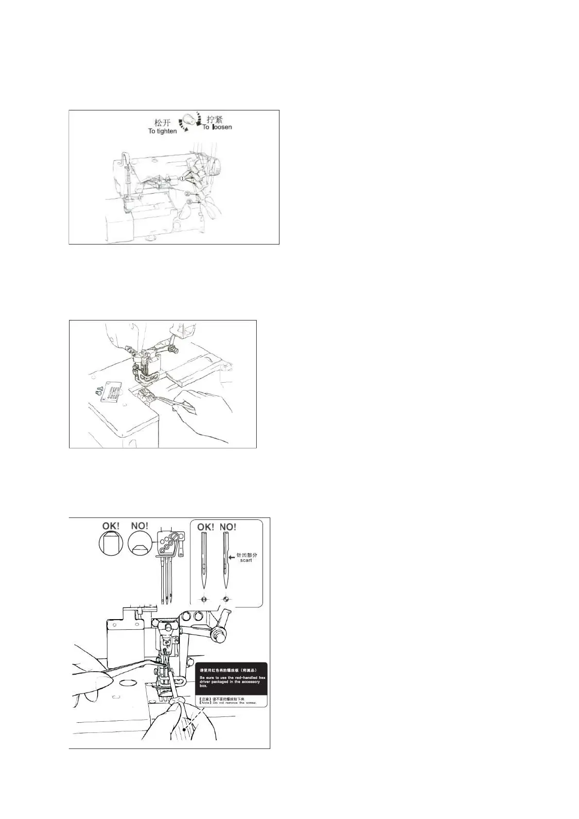 1)Wyregulować naciąg pokrętłem gwintu igły (1), pokrętłem górnym pokrywy nici (2) i pokrętłem dolnym