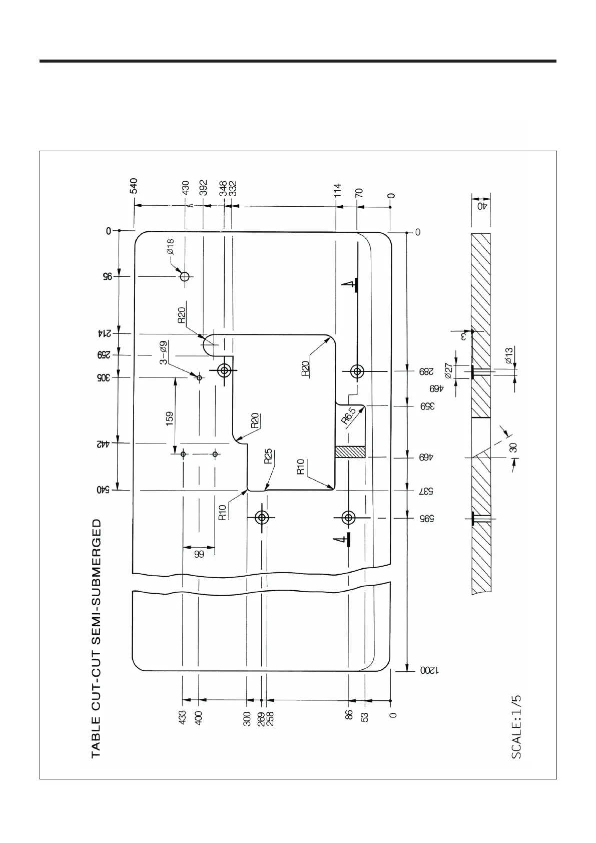 Cut the table referring to the diagram
