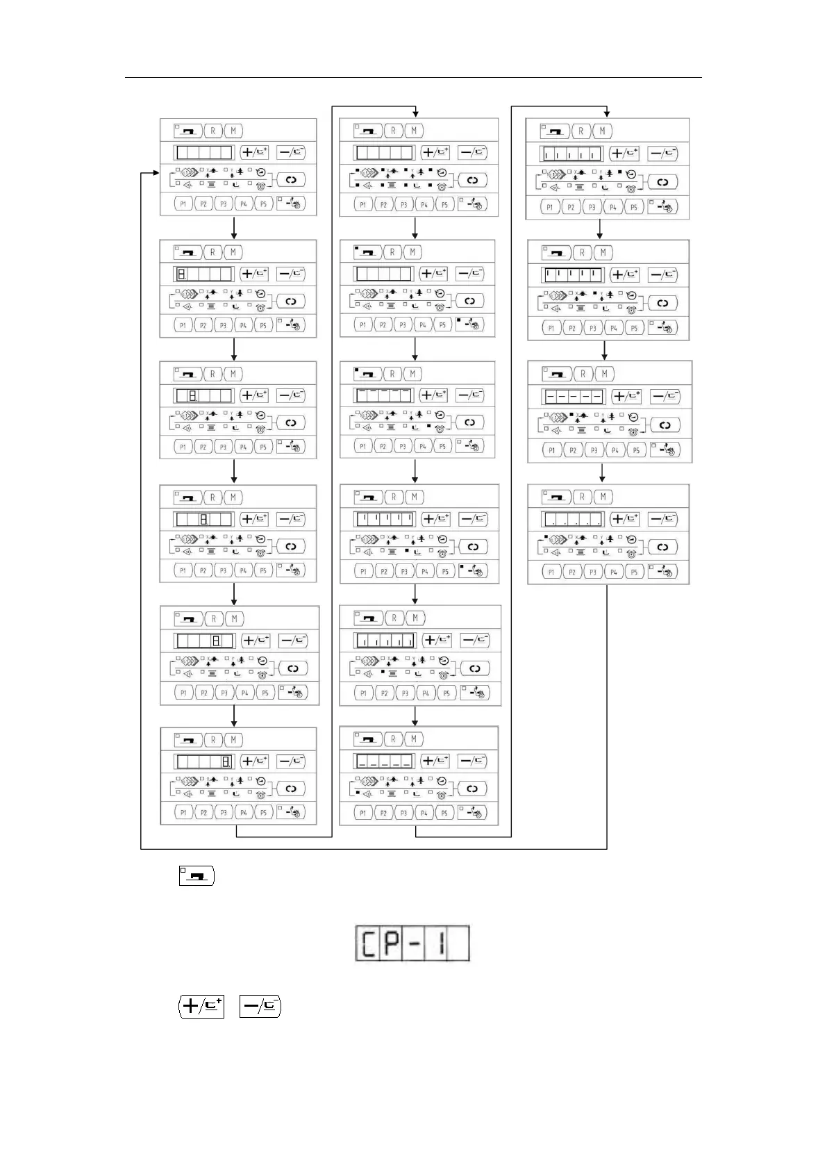 4) Press key again to end the Display Mode and the screen displays “CP-1”, as shown