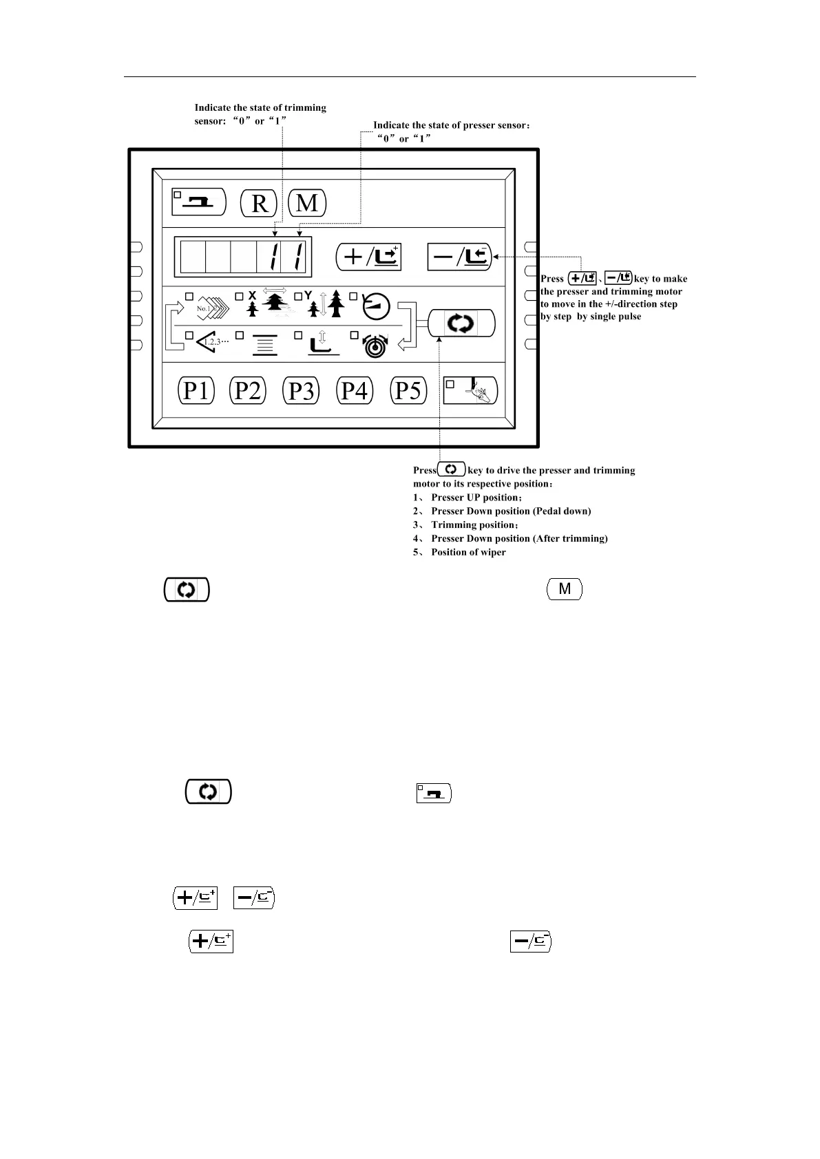 Press 、 key to make the thread clamp motor move step by step by single pulse.