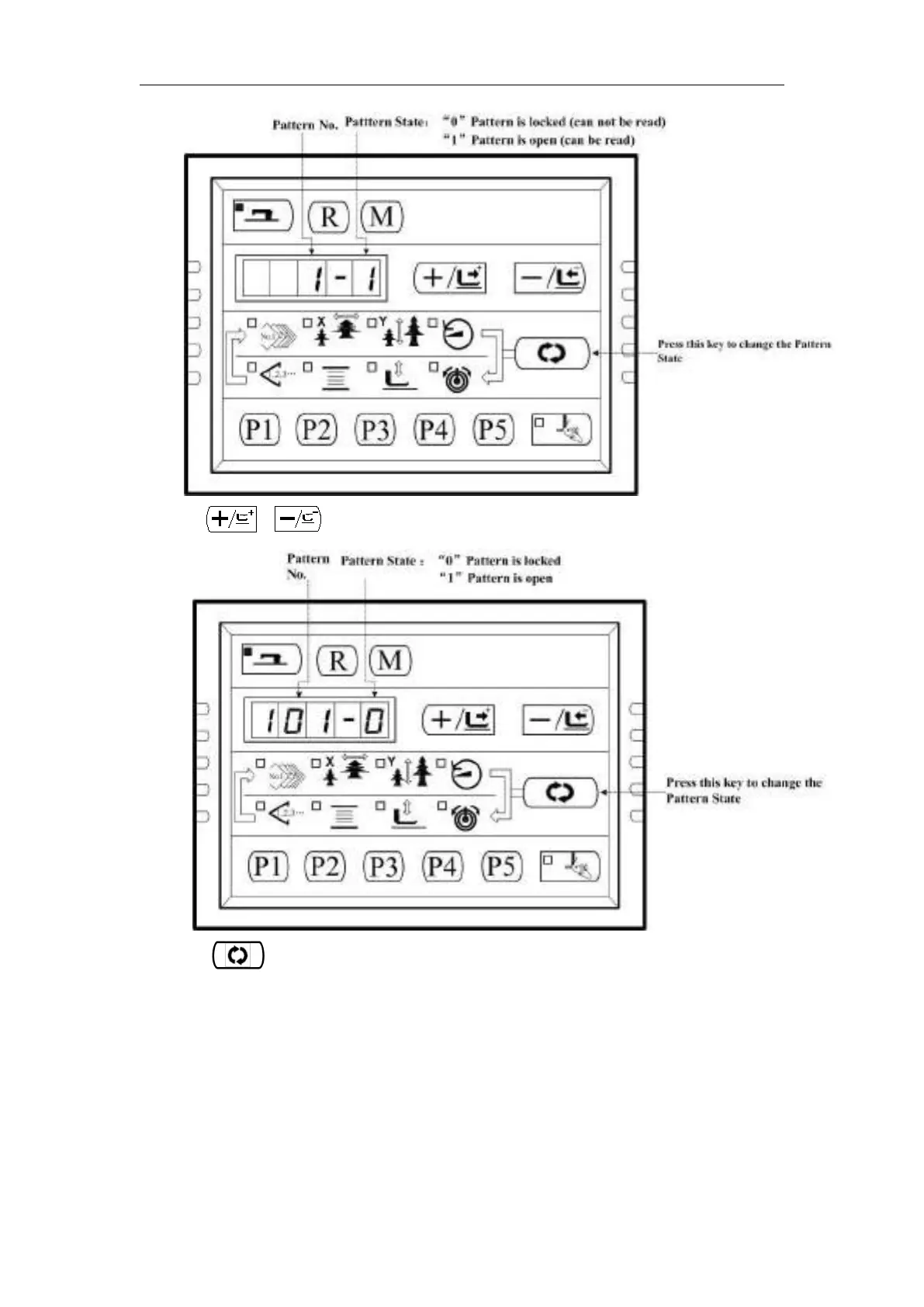 9Press key , the indication change form “101-0” to “101-1”. It means that the Pattern