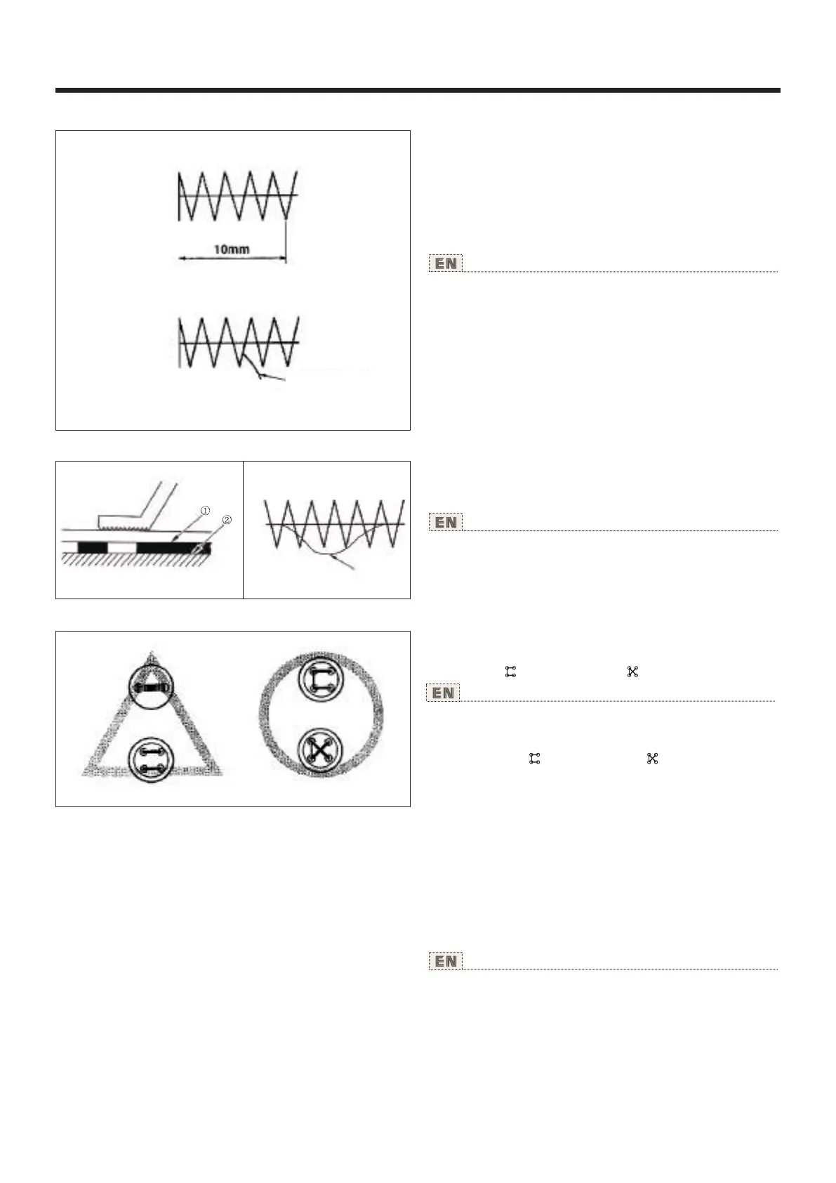 1)缝制长度短(约10mm以下)时,把机线调短,但