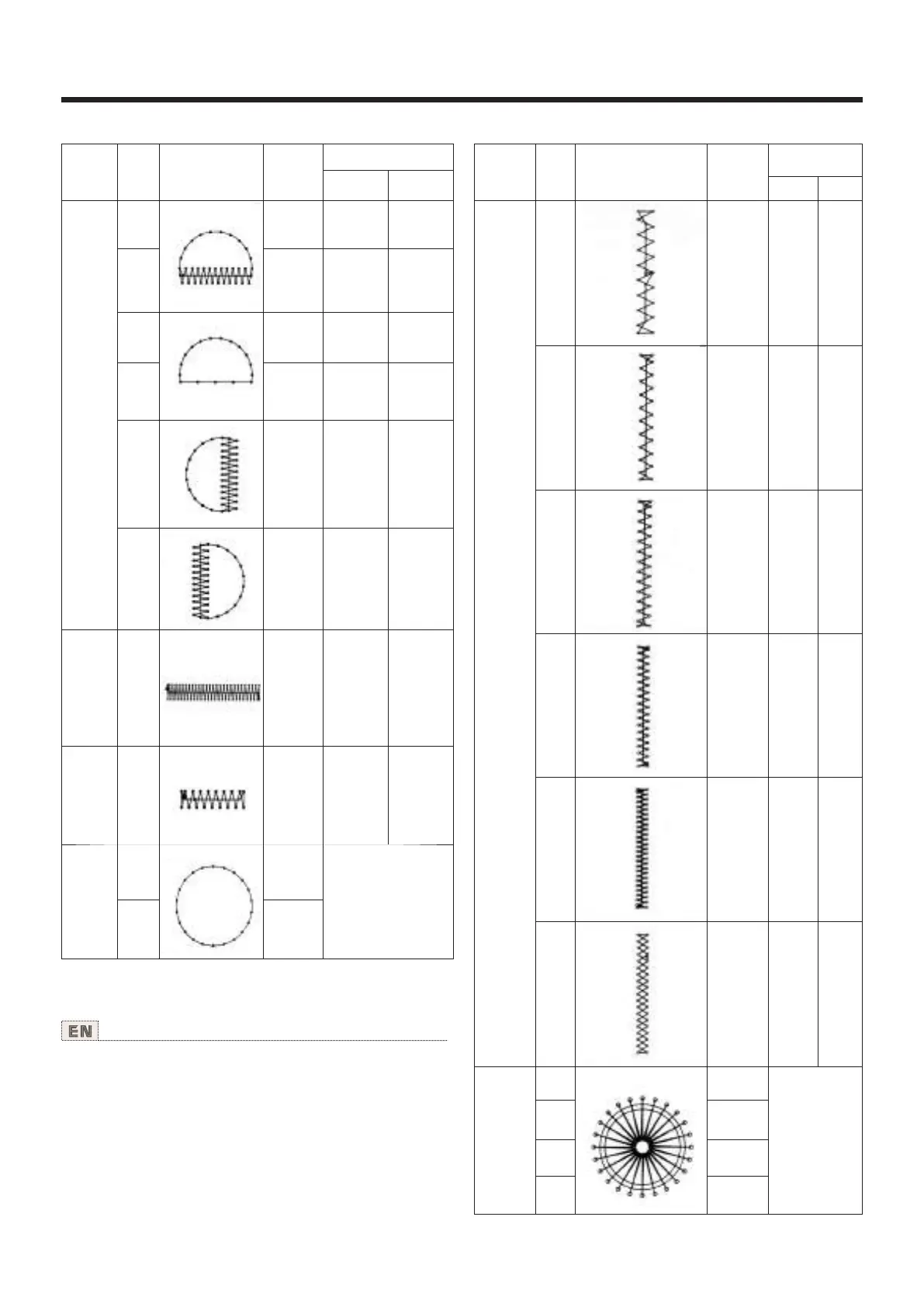 Pattern Nos. 41 t0 46 are for the optional work clamp foot