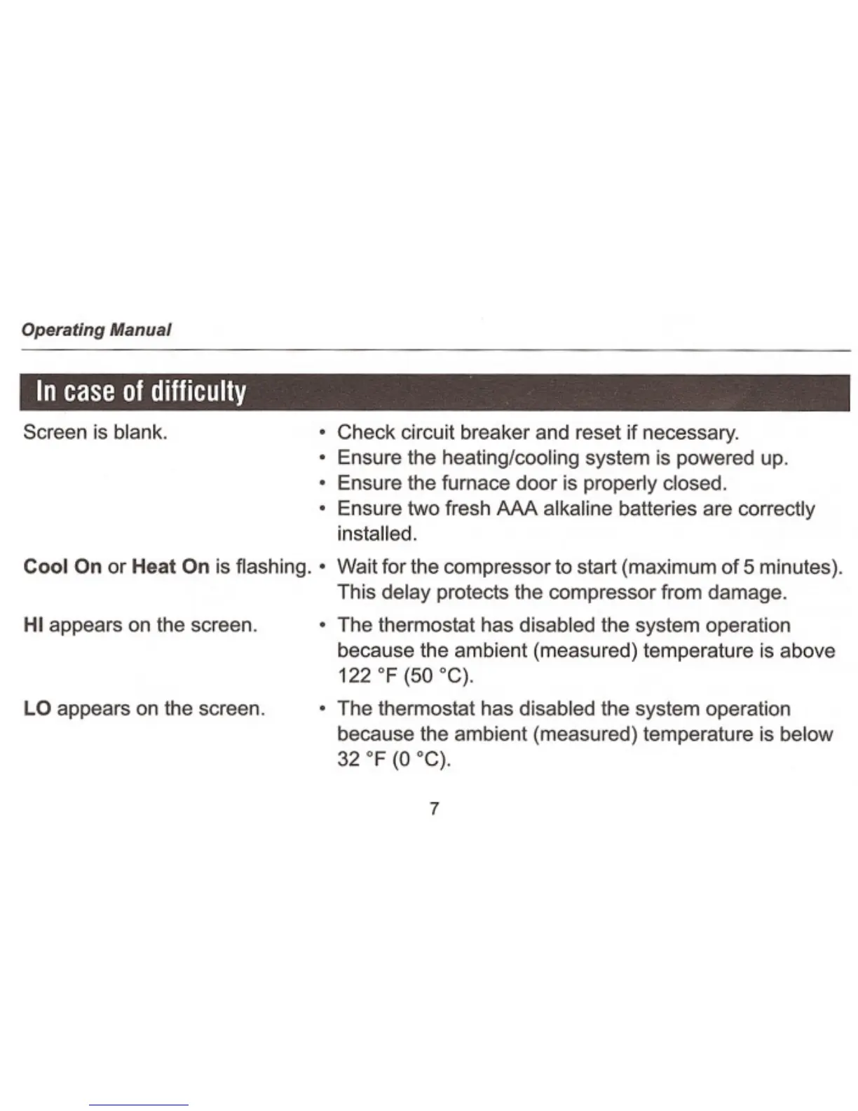 Gemtech GT110D - Troubleshooting Common Issues; Blank Screen Resolution; Flashing Heat;Cool On Indicator; HI or LO Temperature Display