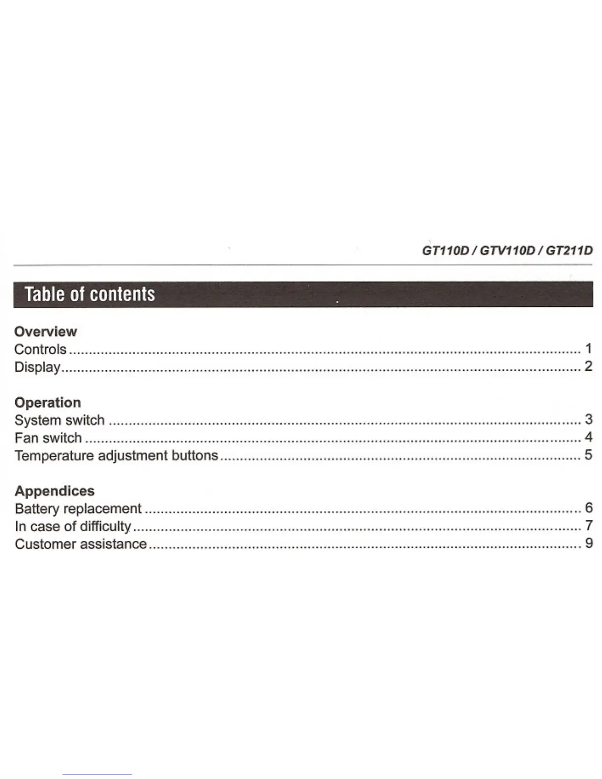 Gemtech GT110D - Table of Contents