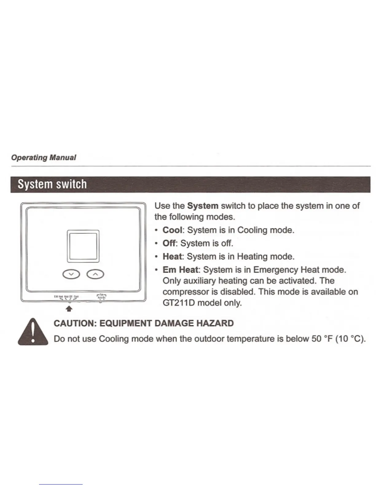 Gemtech GT110D - System Switch Operation; Operating Modes; Cooling Mode Caution