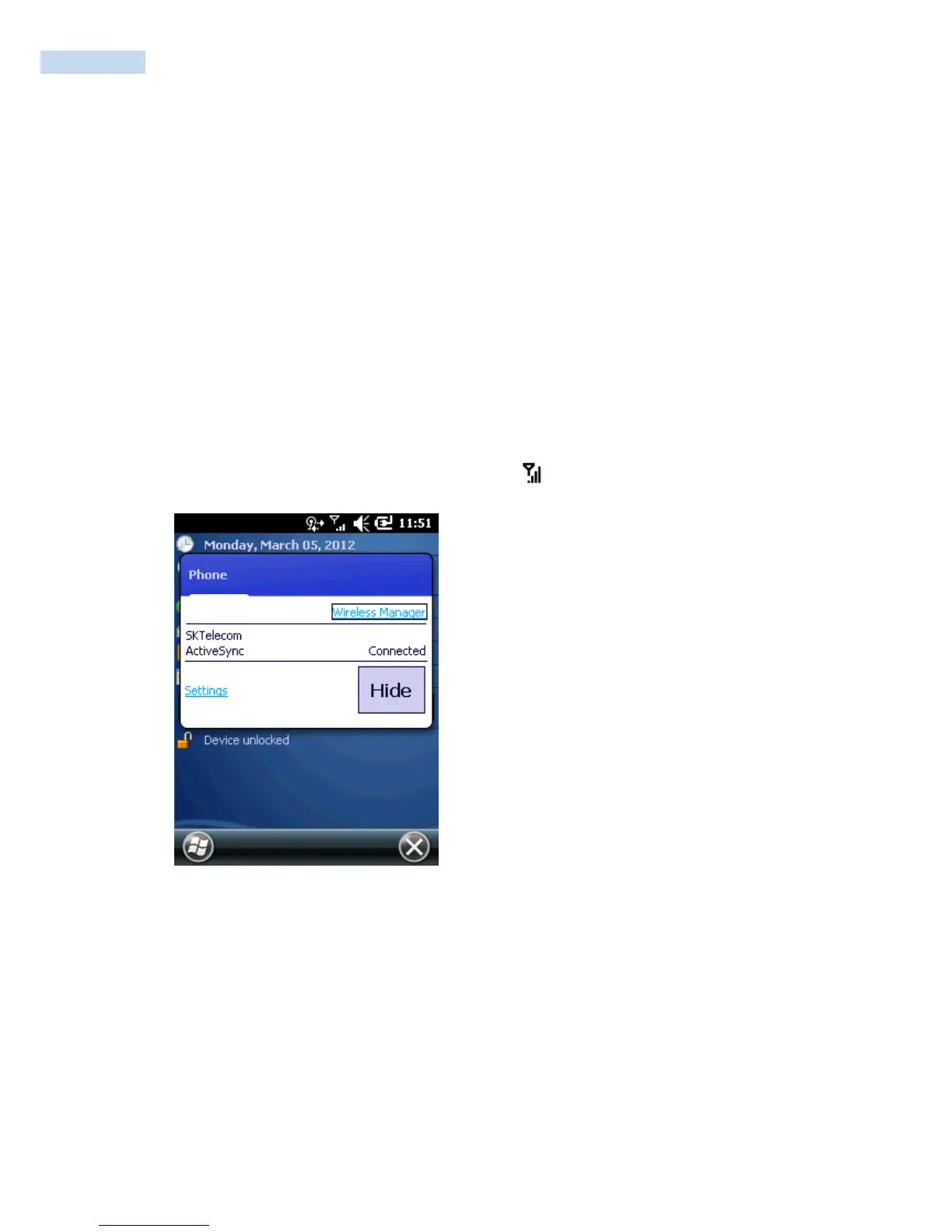 2. Verify active phone and data services by tapping to display the Phone dialog. The Carrier