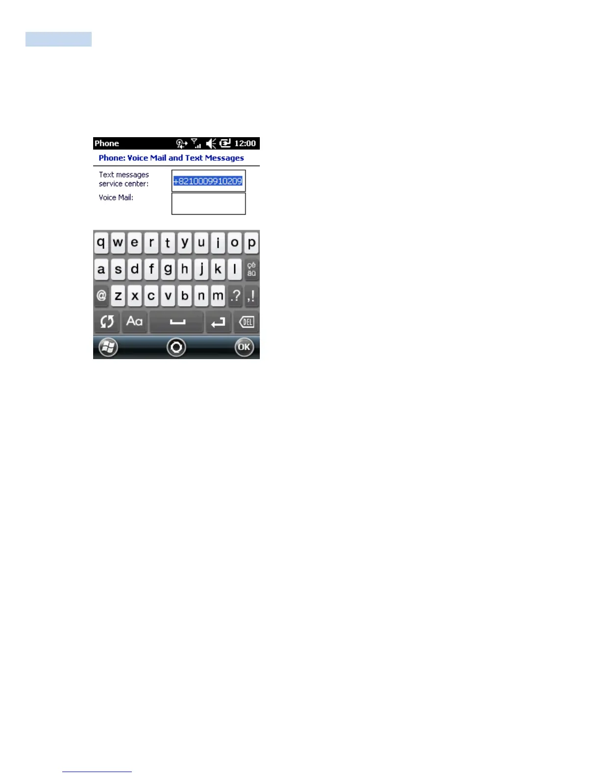 To use voice mail and send short messages, enter the voice mail and/or text message phone number in the