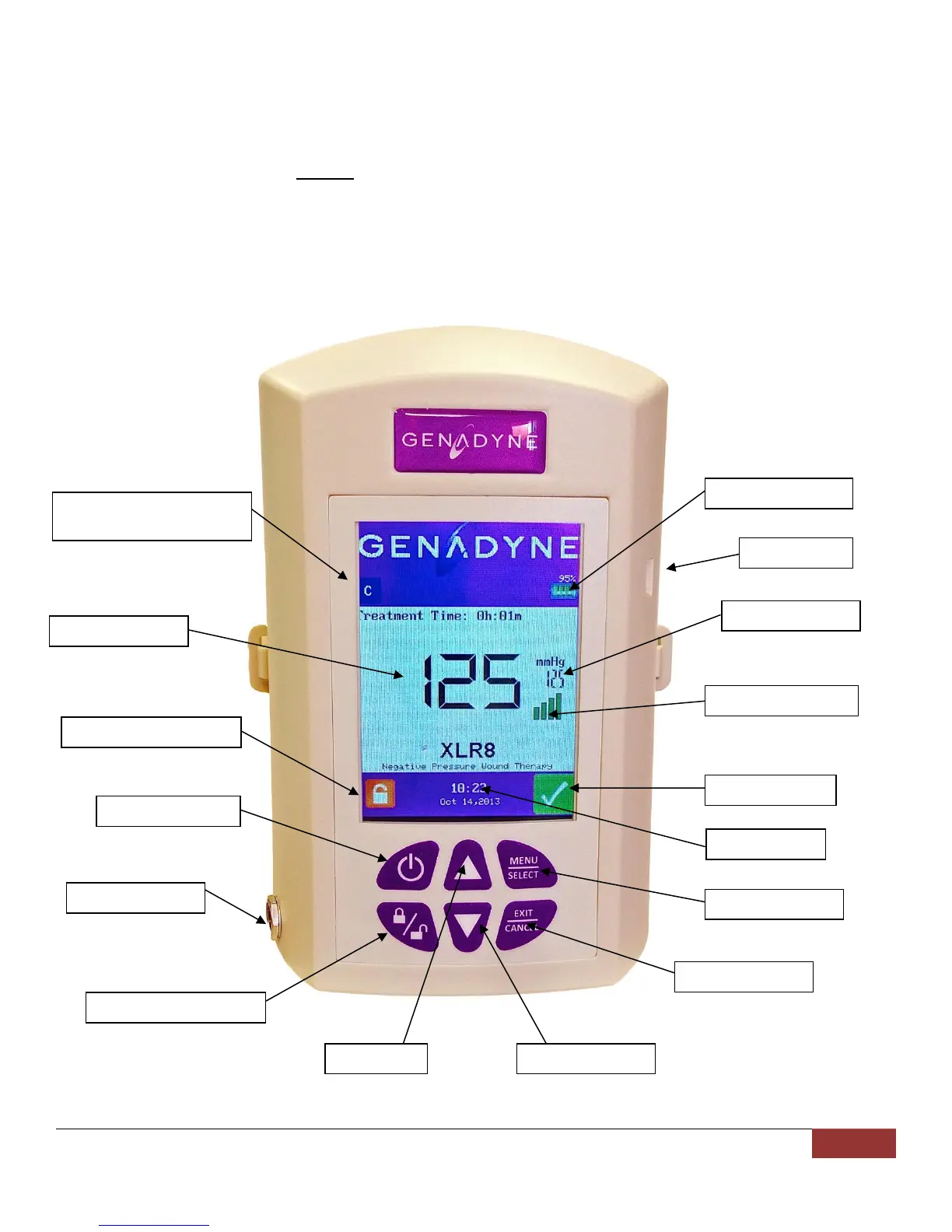 operation of the Genadyne XLR8+ Negative Pressure Wound Therapy (NPWT) System. Use this