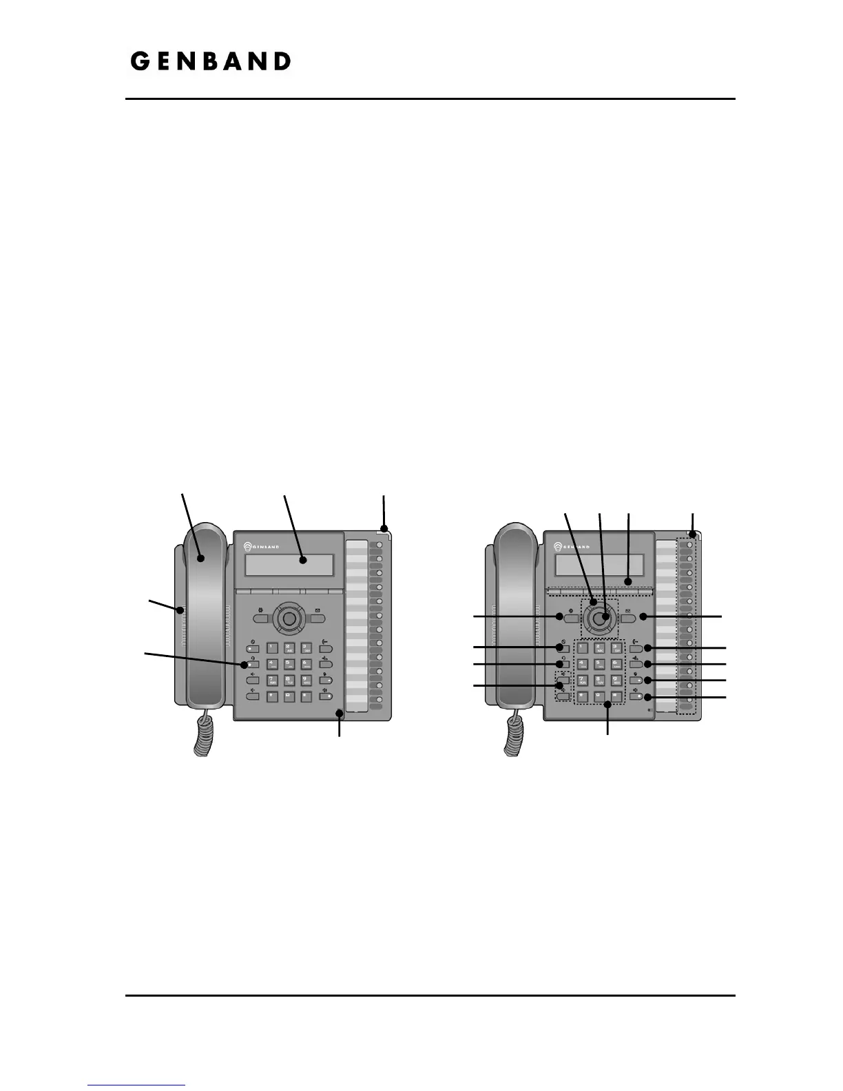 (programmable) buttons, an LCD display, softkeys, menu navigation buttons, and a dial pad.